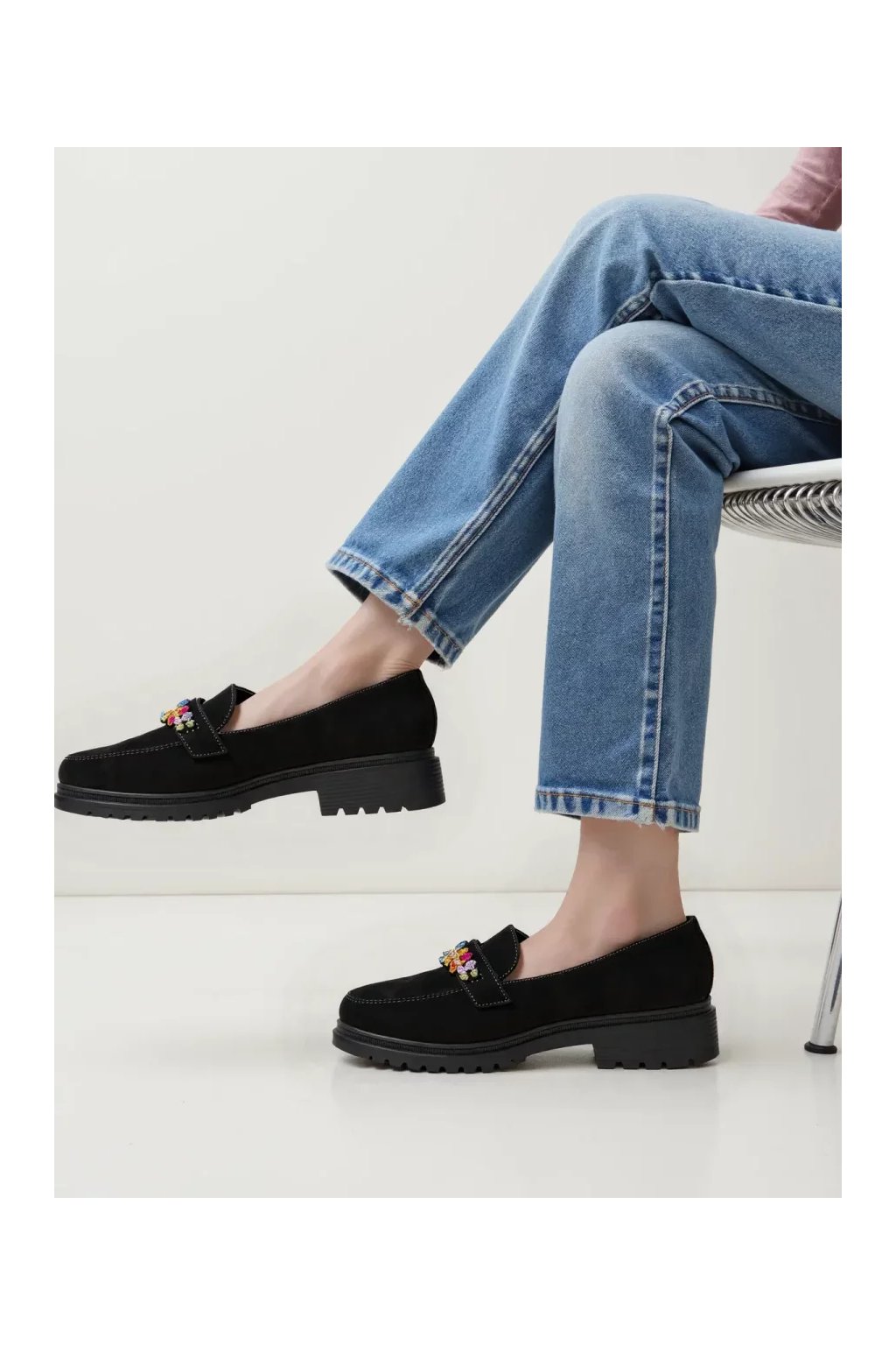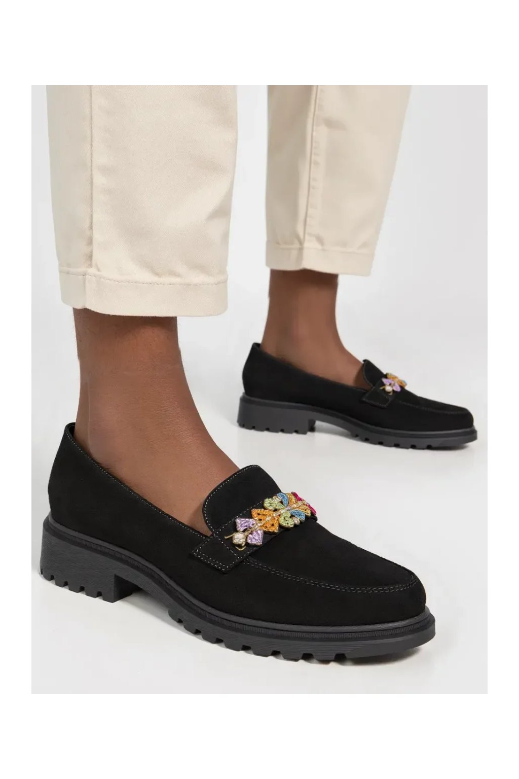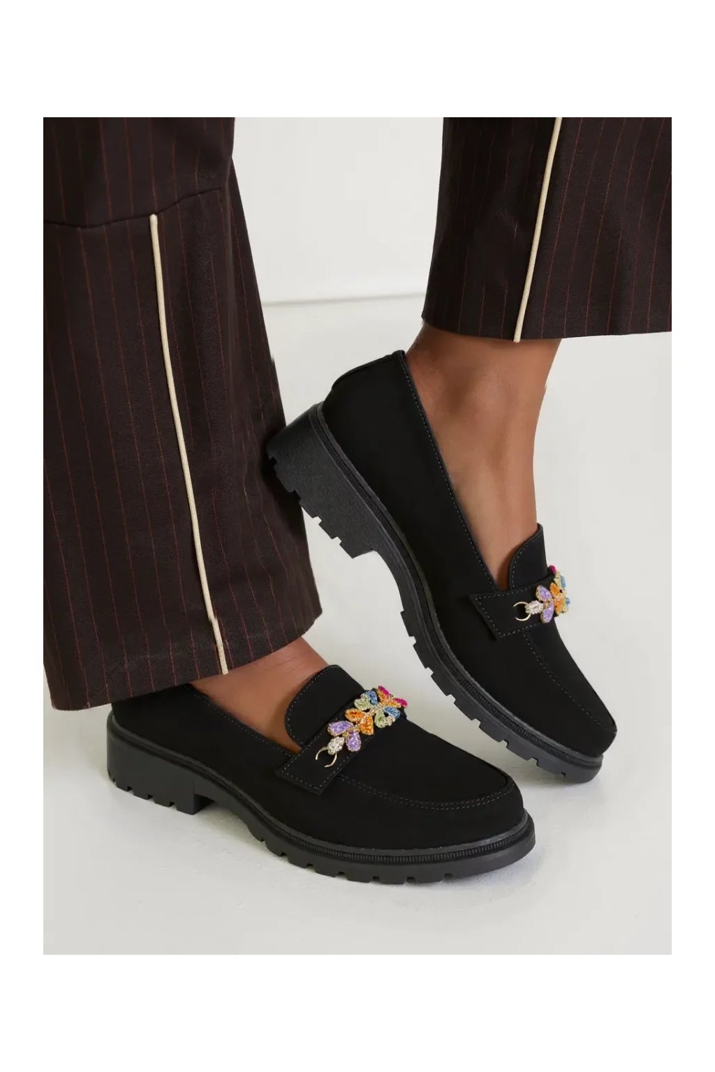Čierne dámske mokasíny z ekokože, zdobené kamienkami, kód BNJ8763