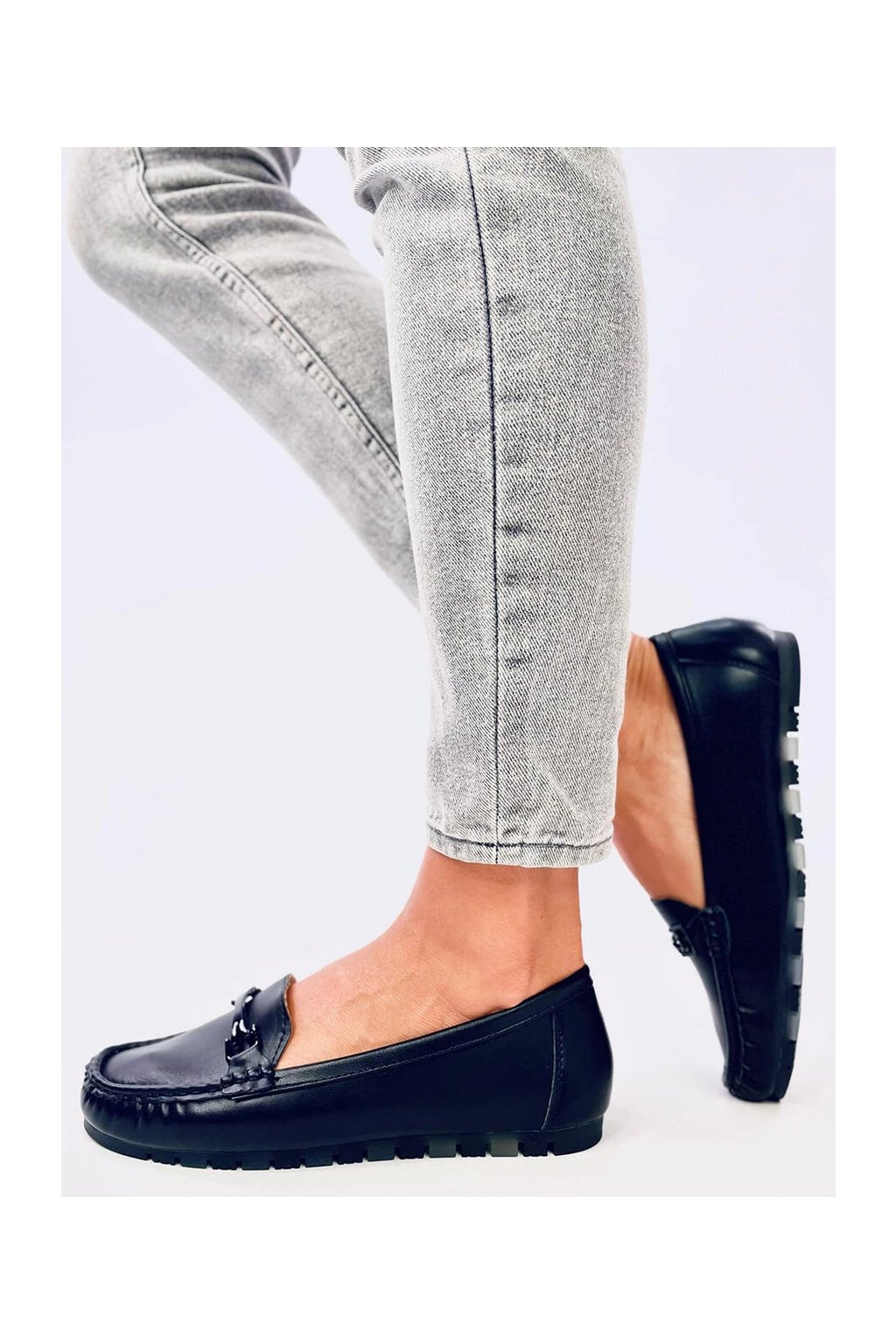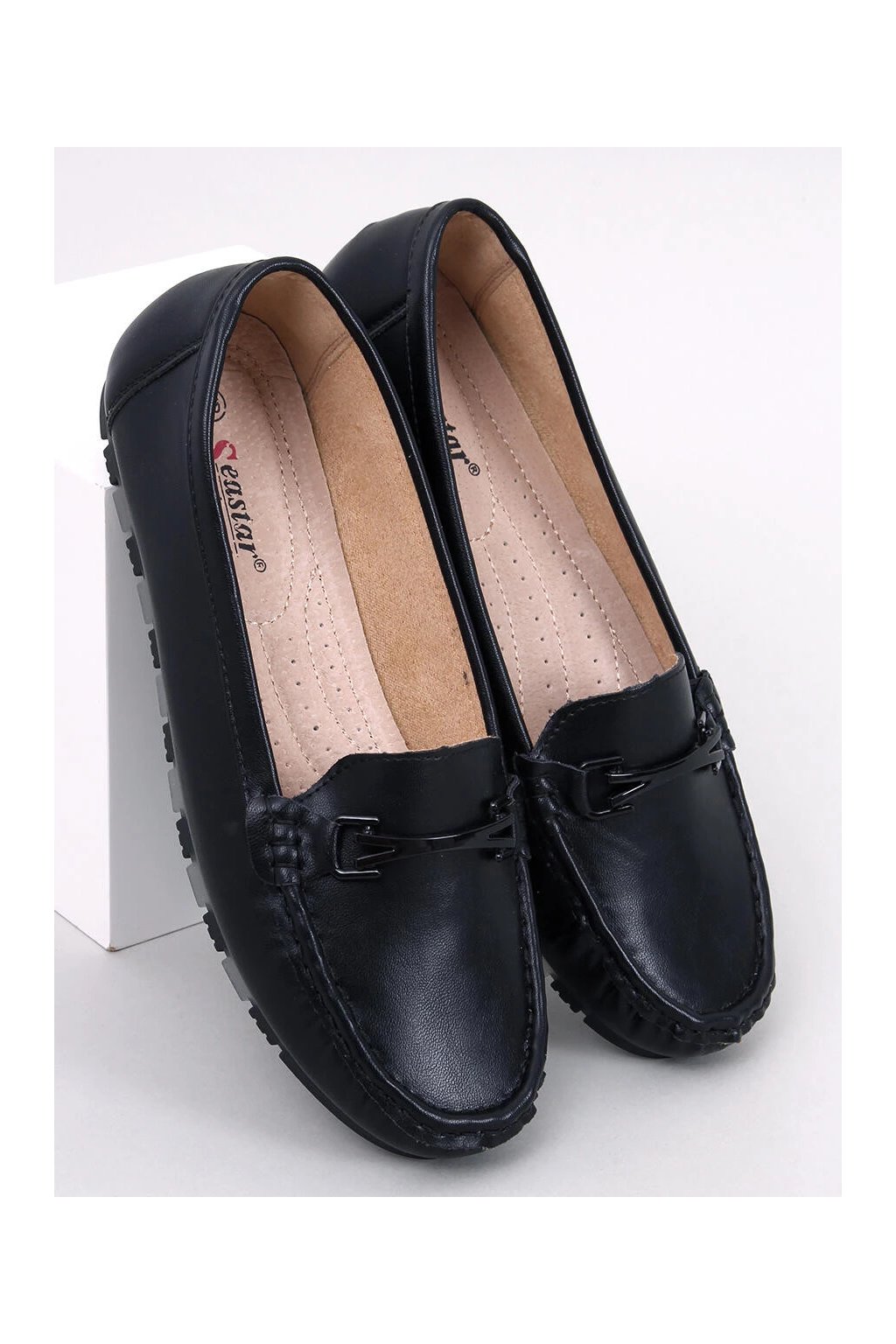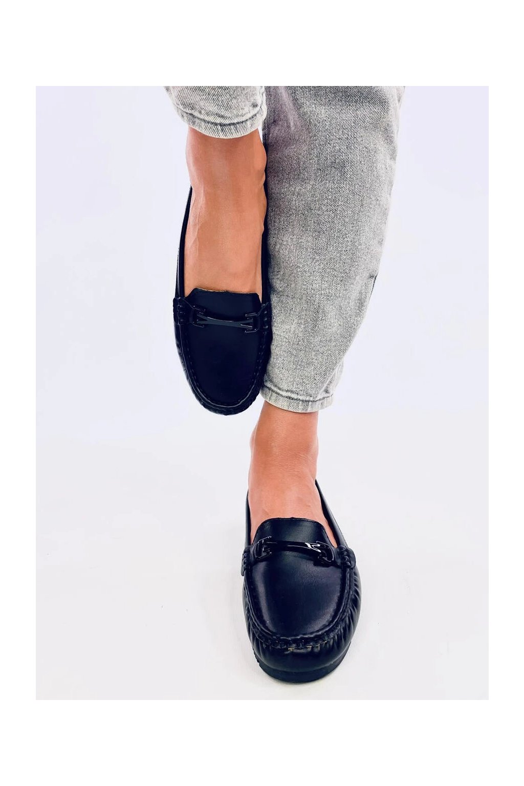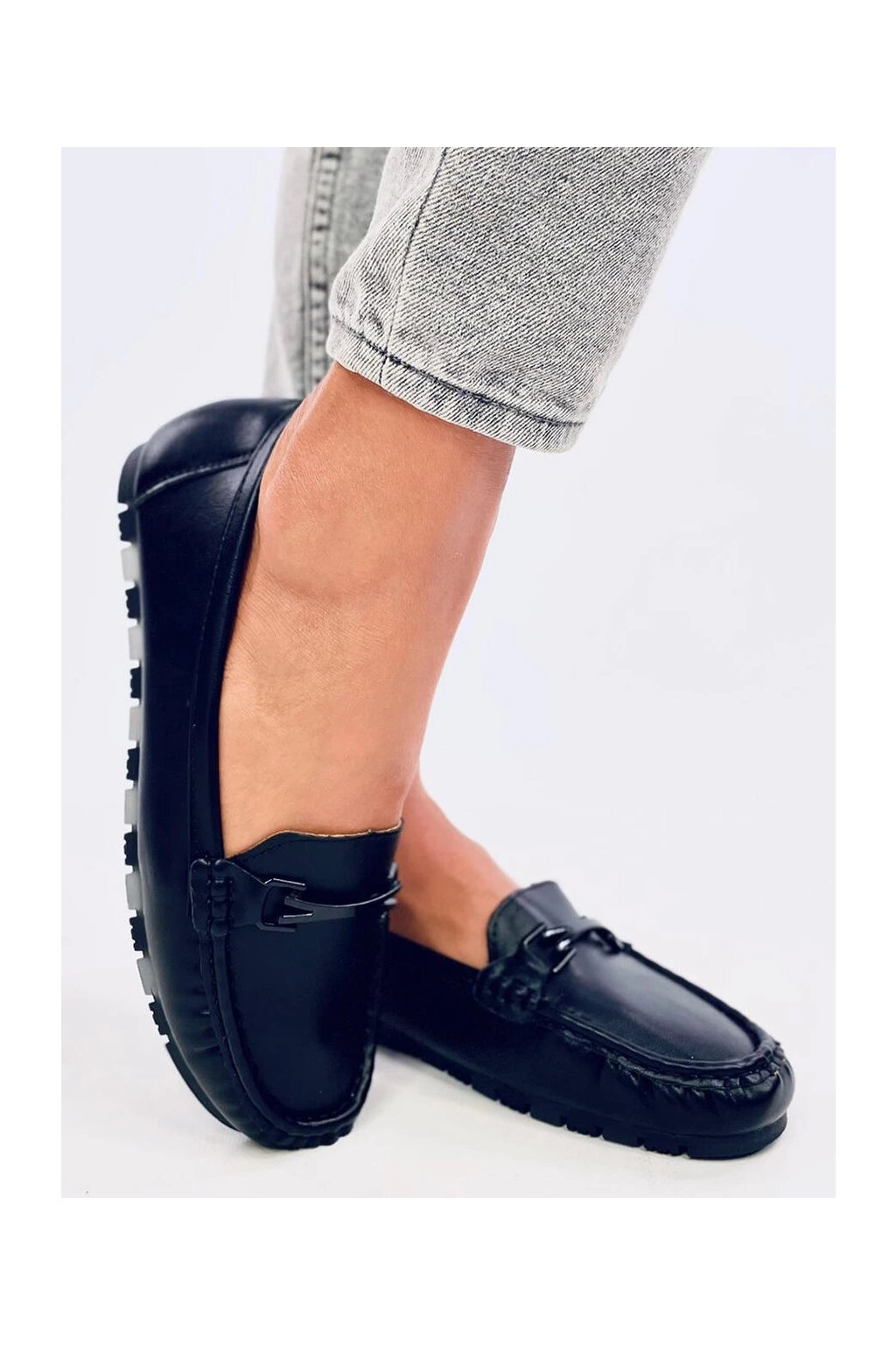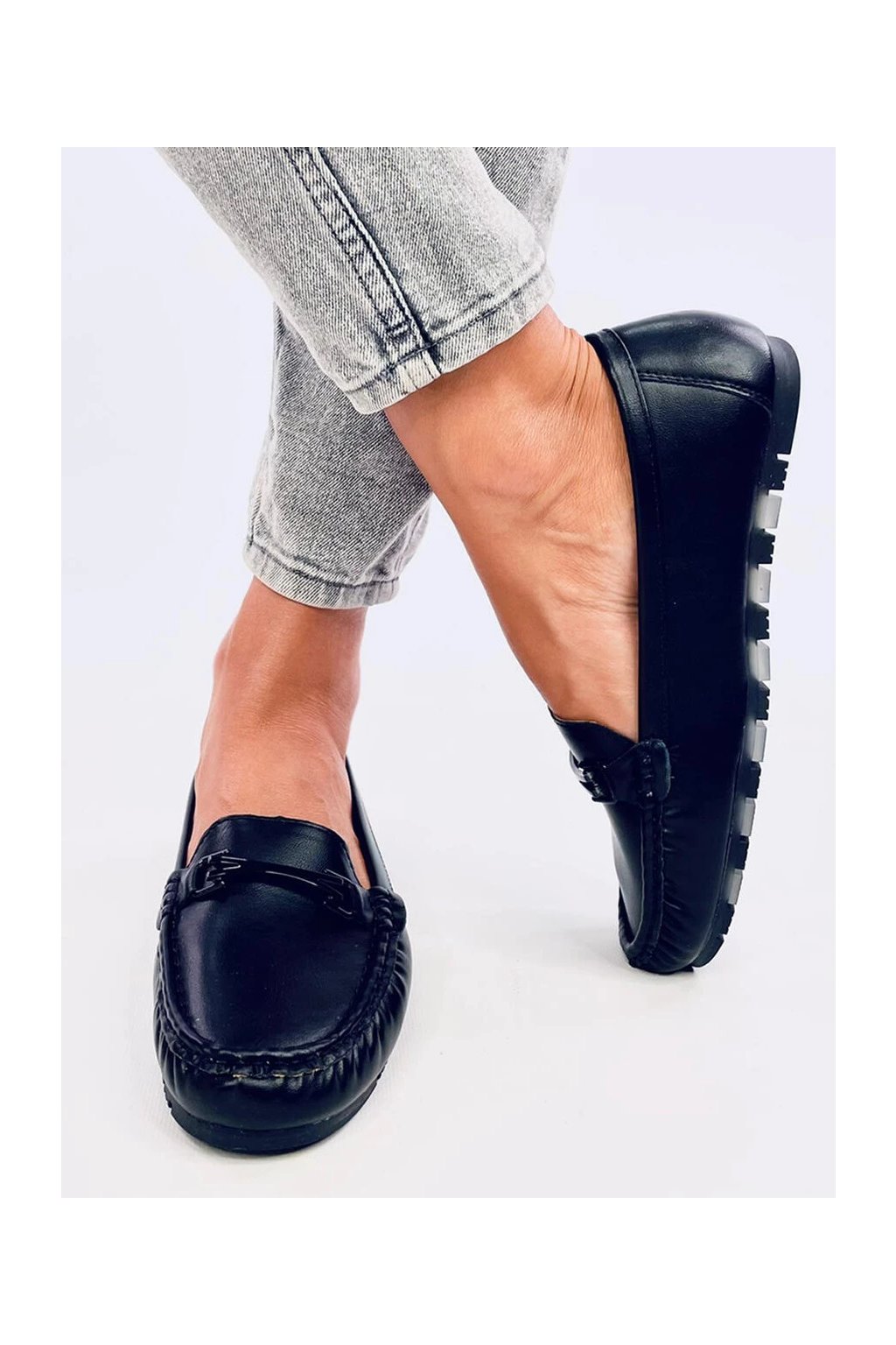 Dámske čierne mokasíny z eko kože na bežný deň, hladké, okrúhla špička, GS31P