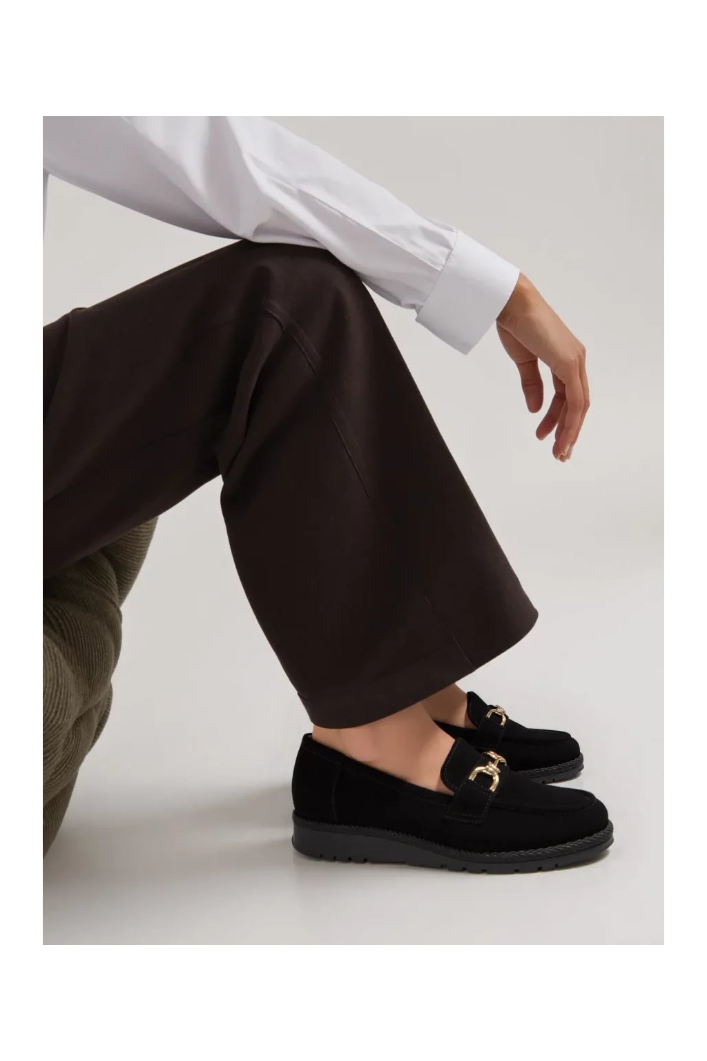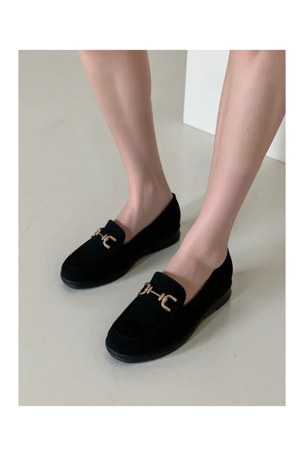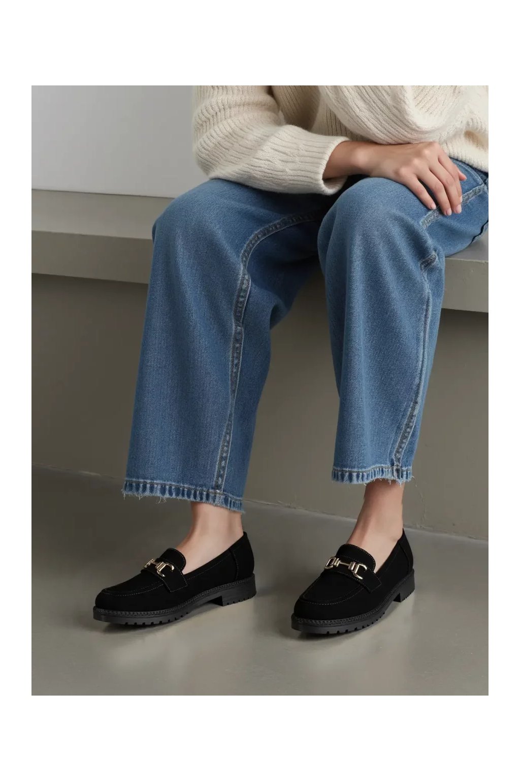 Dámske čierne mokasíny z eko semišu, perforované, kód C-426
