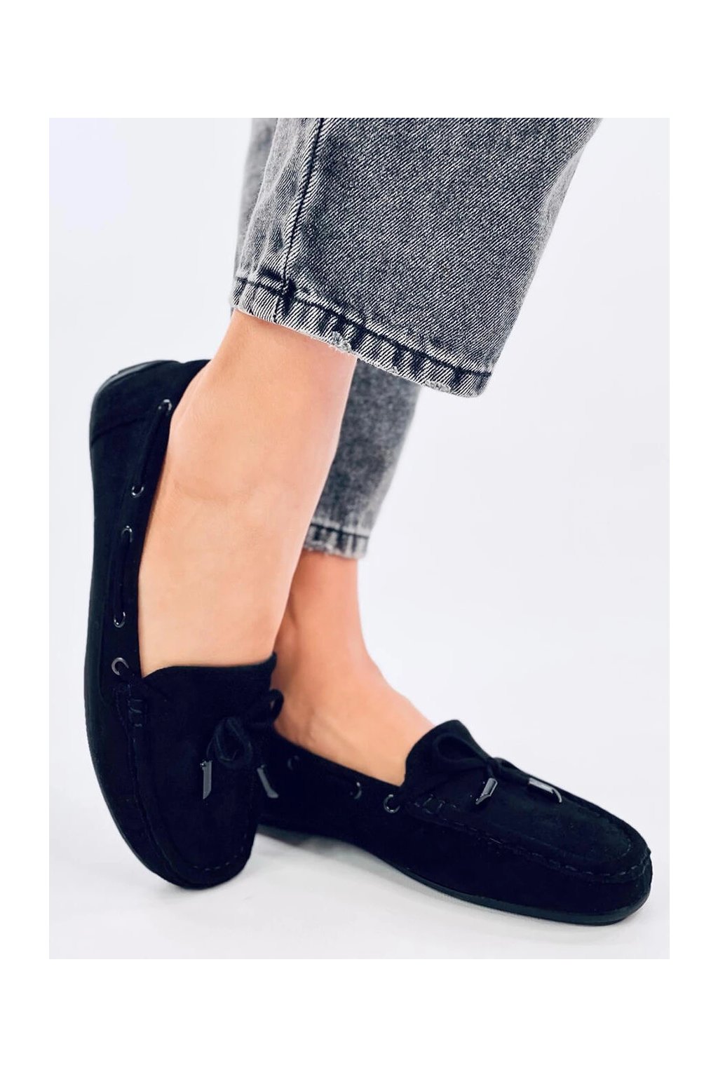 Dámske čierne mokasíny z eko semišu na bežný deň, hladké, okrúhla špička RQ013