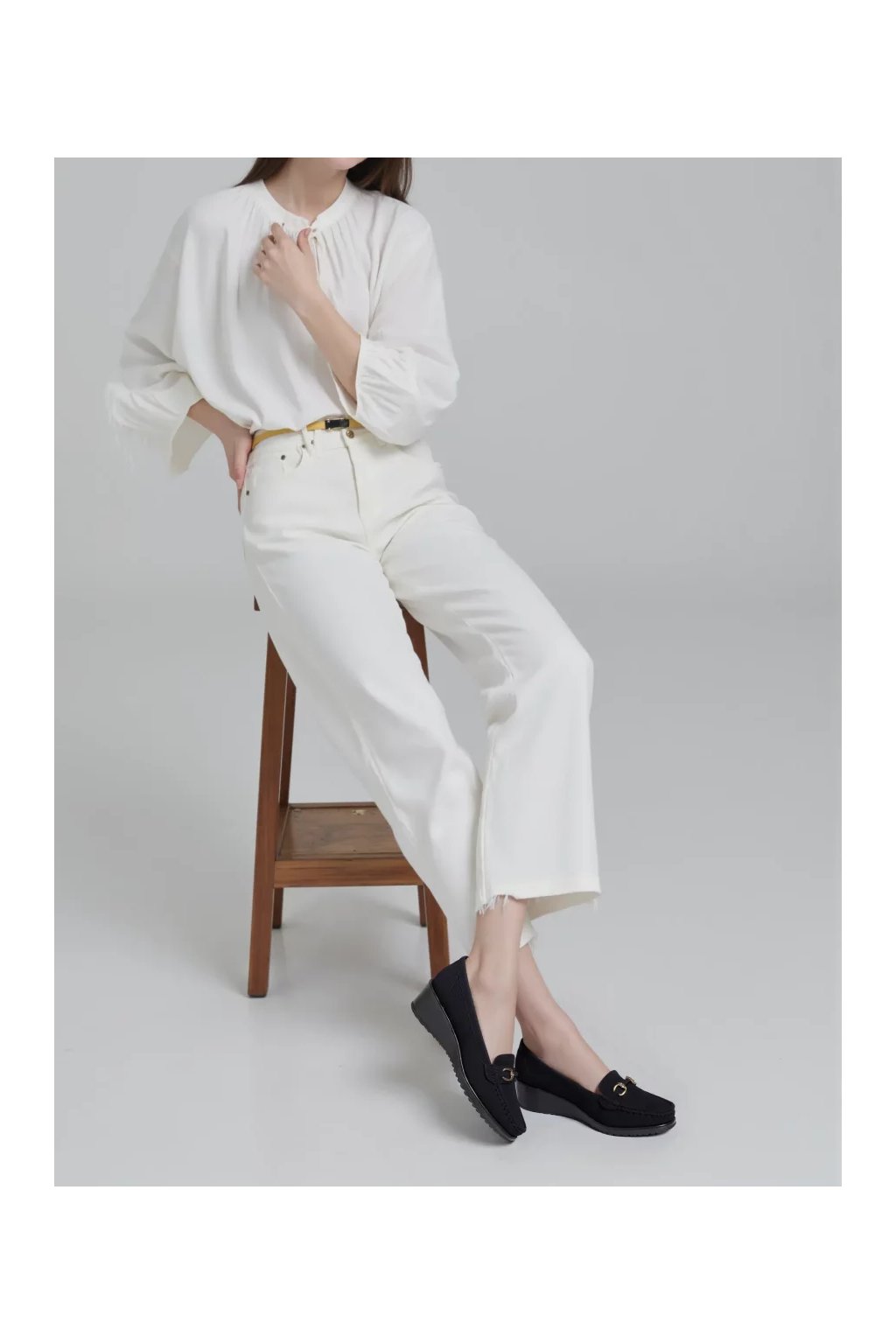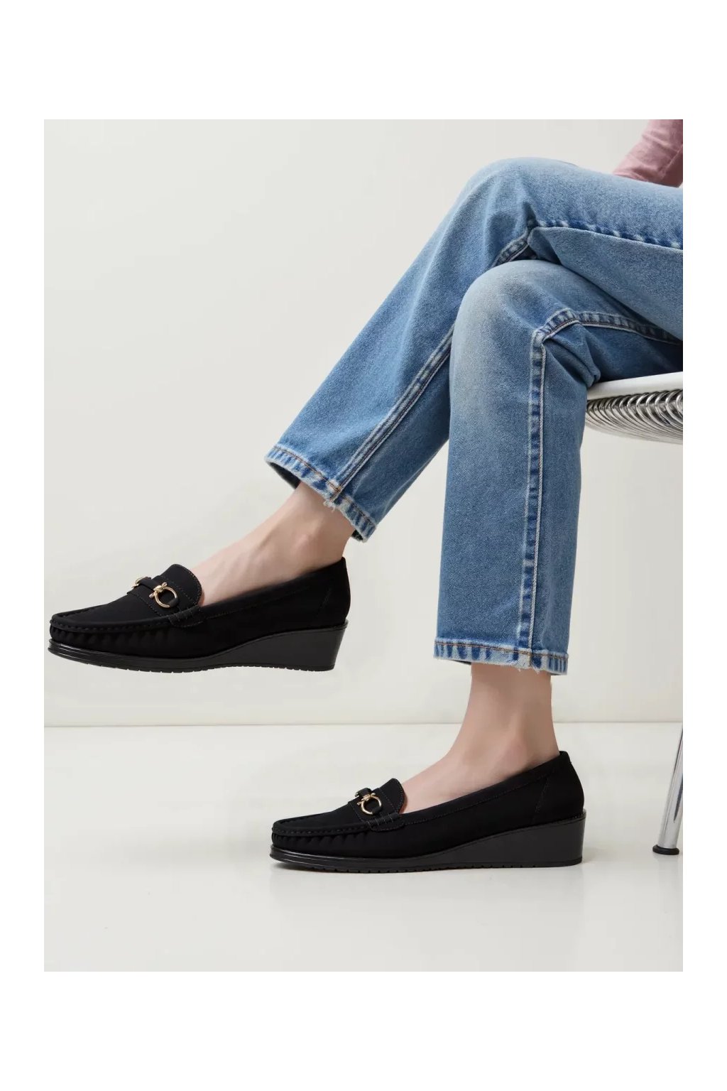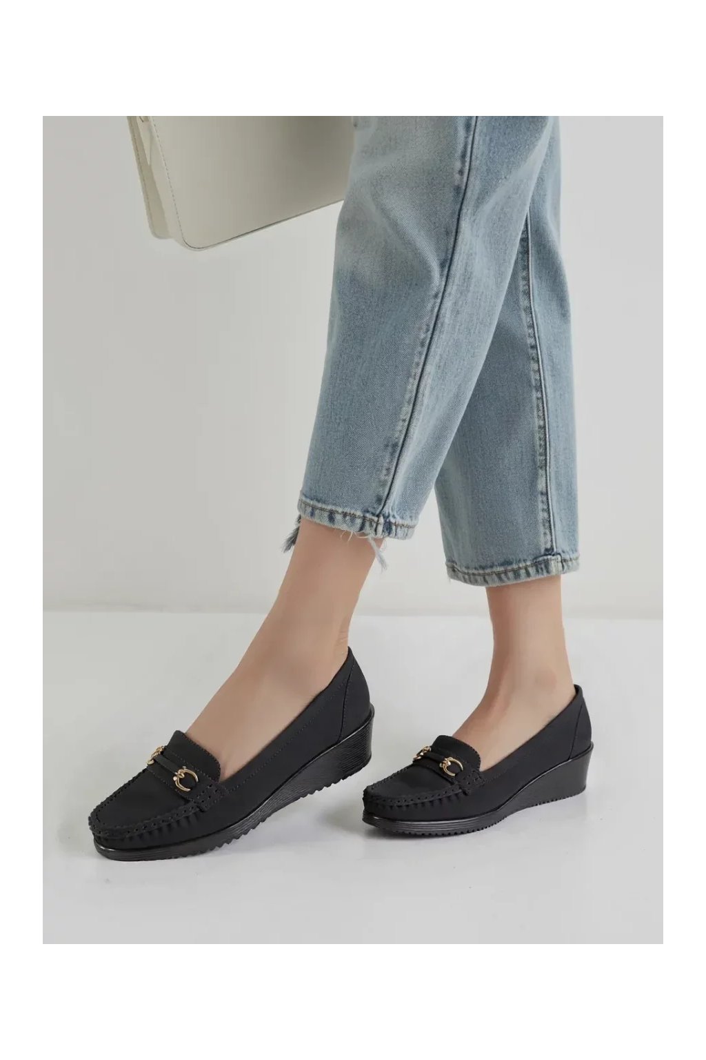 Dámske čierne mokasíny z ekokože na bežný deň, kód QQ-10