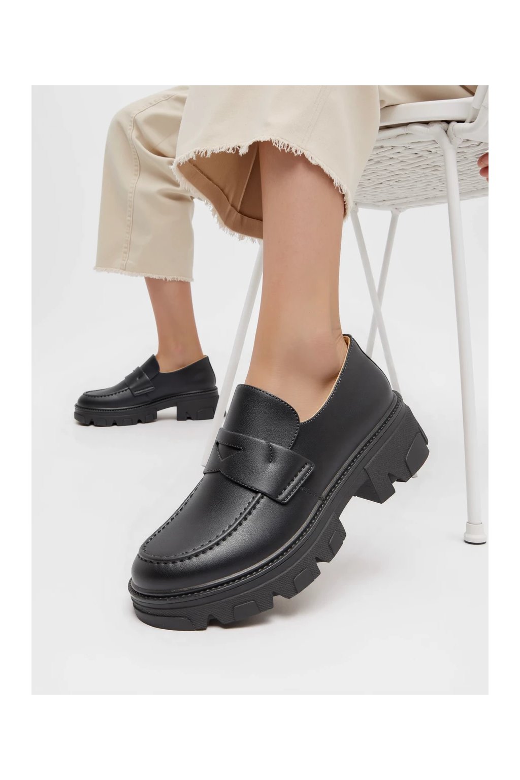 Dámske čierne mokasíny z ekokože, elegantné, kód MP407