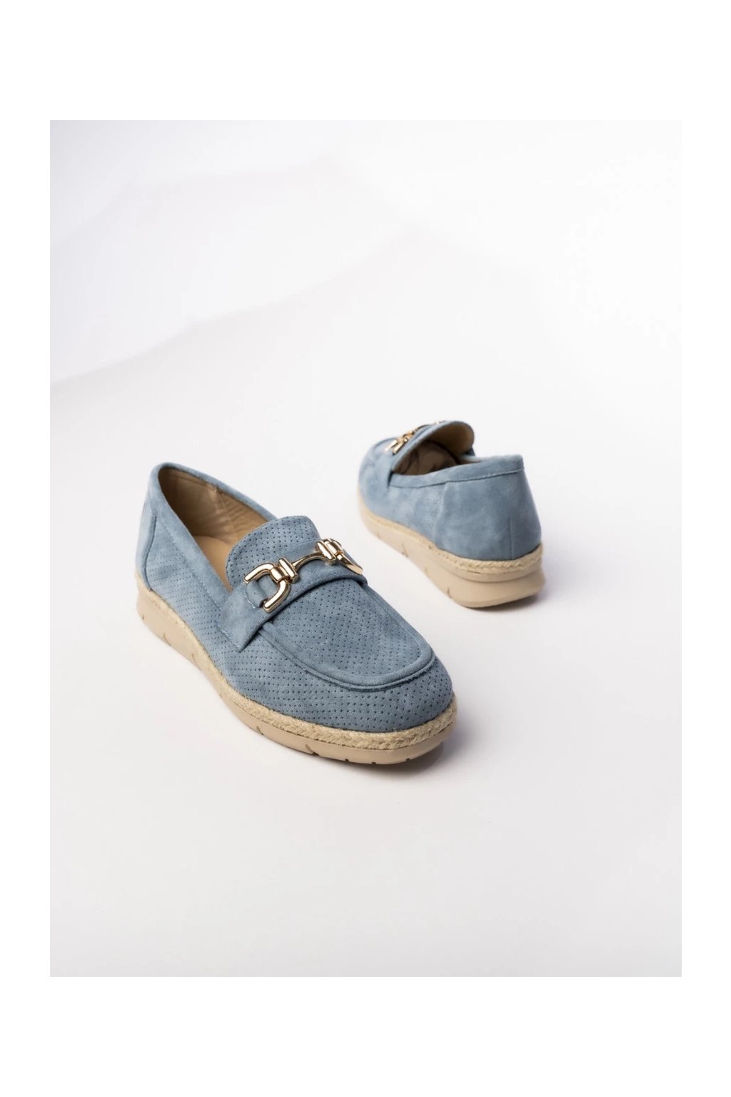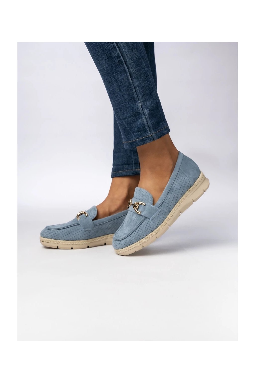 Modré dámske mokasíny z ekologického semišu, kód C-426