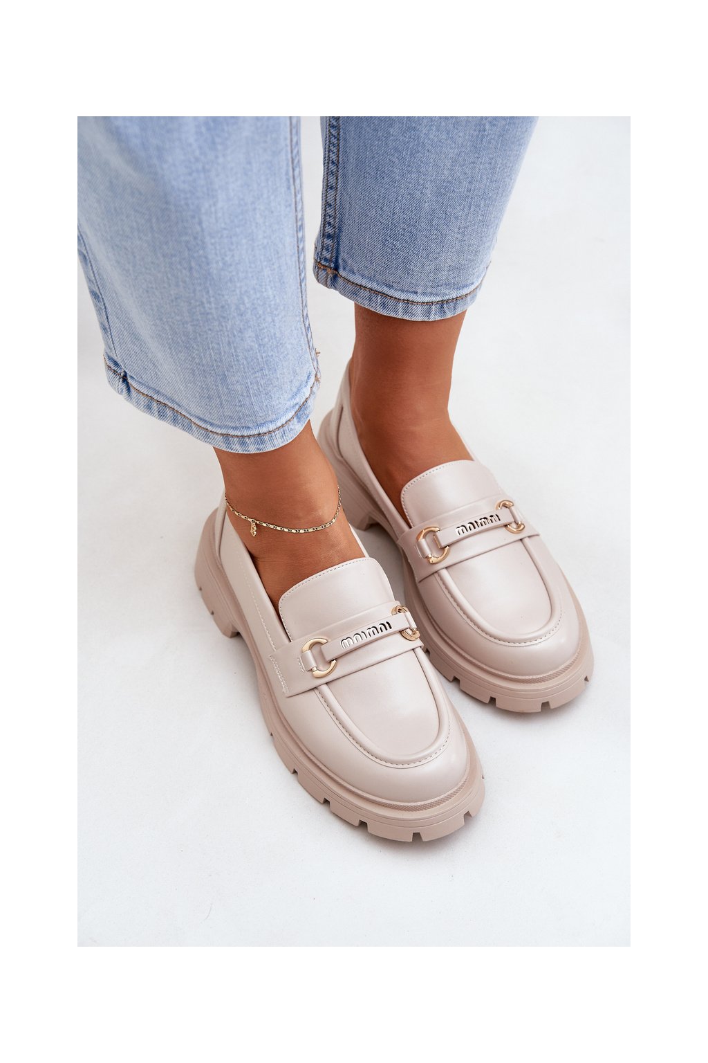 Dámske béžové mokasíny z eko kože, kód CM06P BEIGE