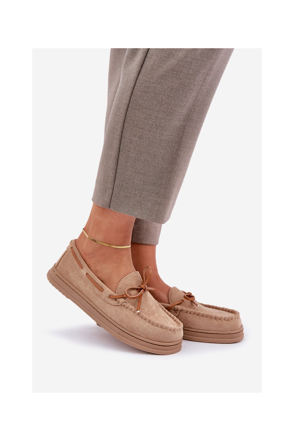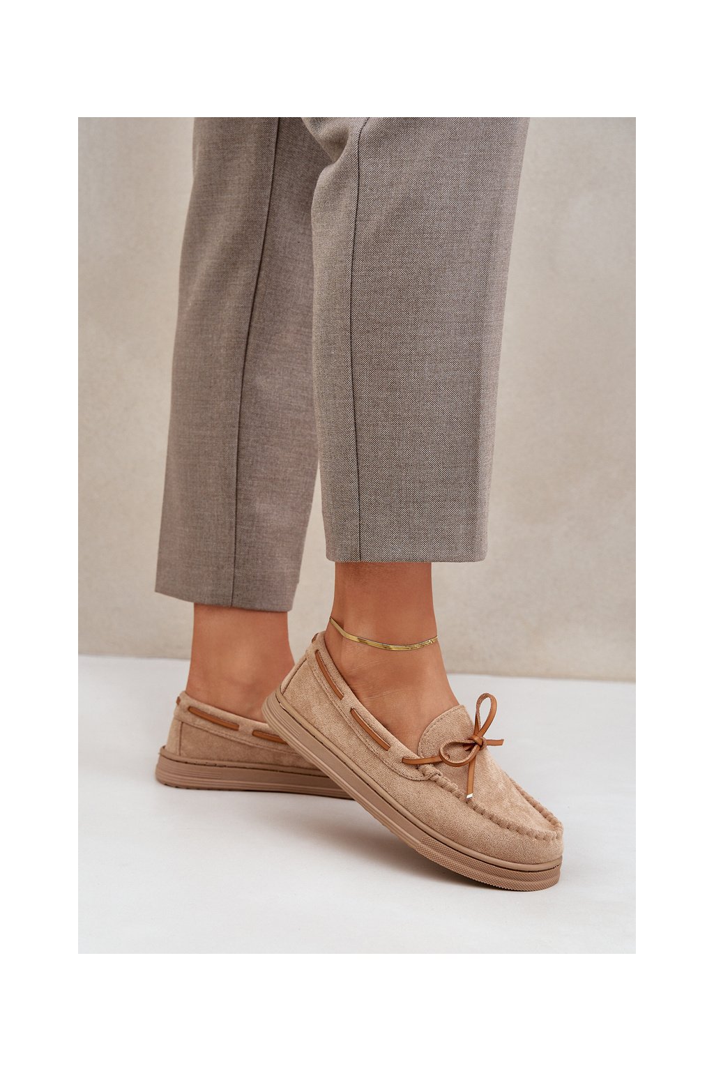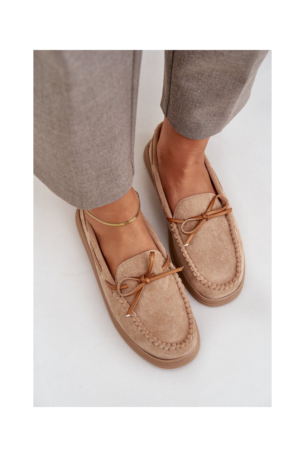 Dámske béžové mokasíny z eko semišu, kód MD1046-7 BEIGE