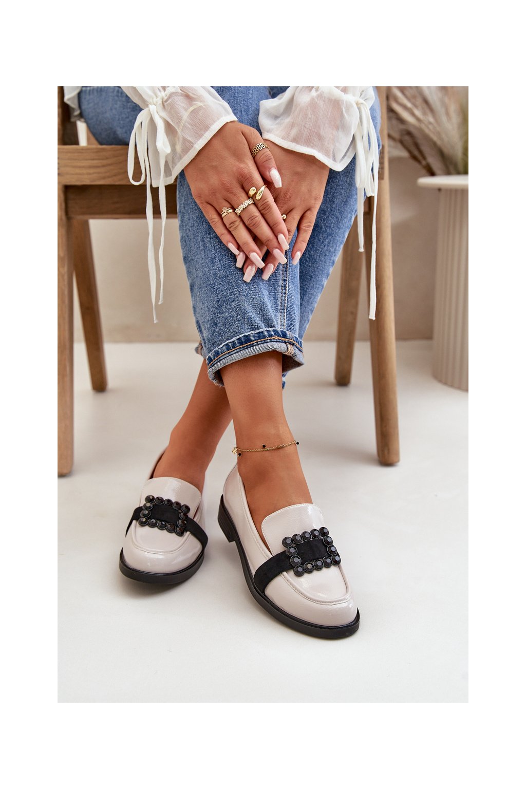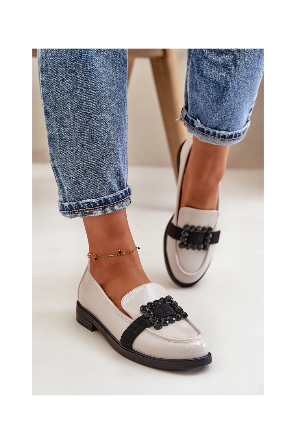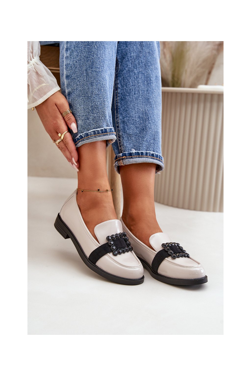 Lakované Dámské Mokasíny S Dekorací Světle Šedé Vinceza 58389 (Veľkosť 37)