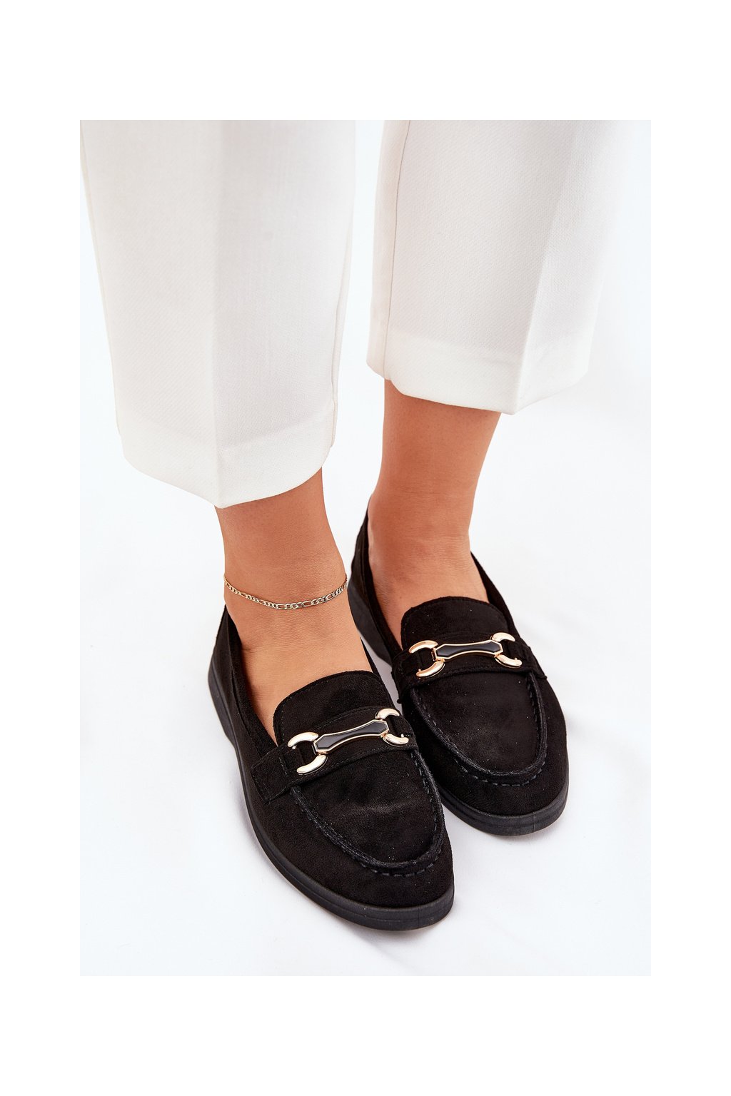 Čierne dámske semišové mokasíny s eko koženou vložkou na rovnej podrážke, kód produktu 23502 BLACK