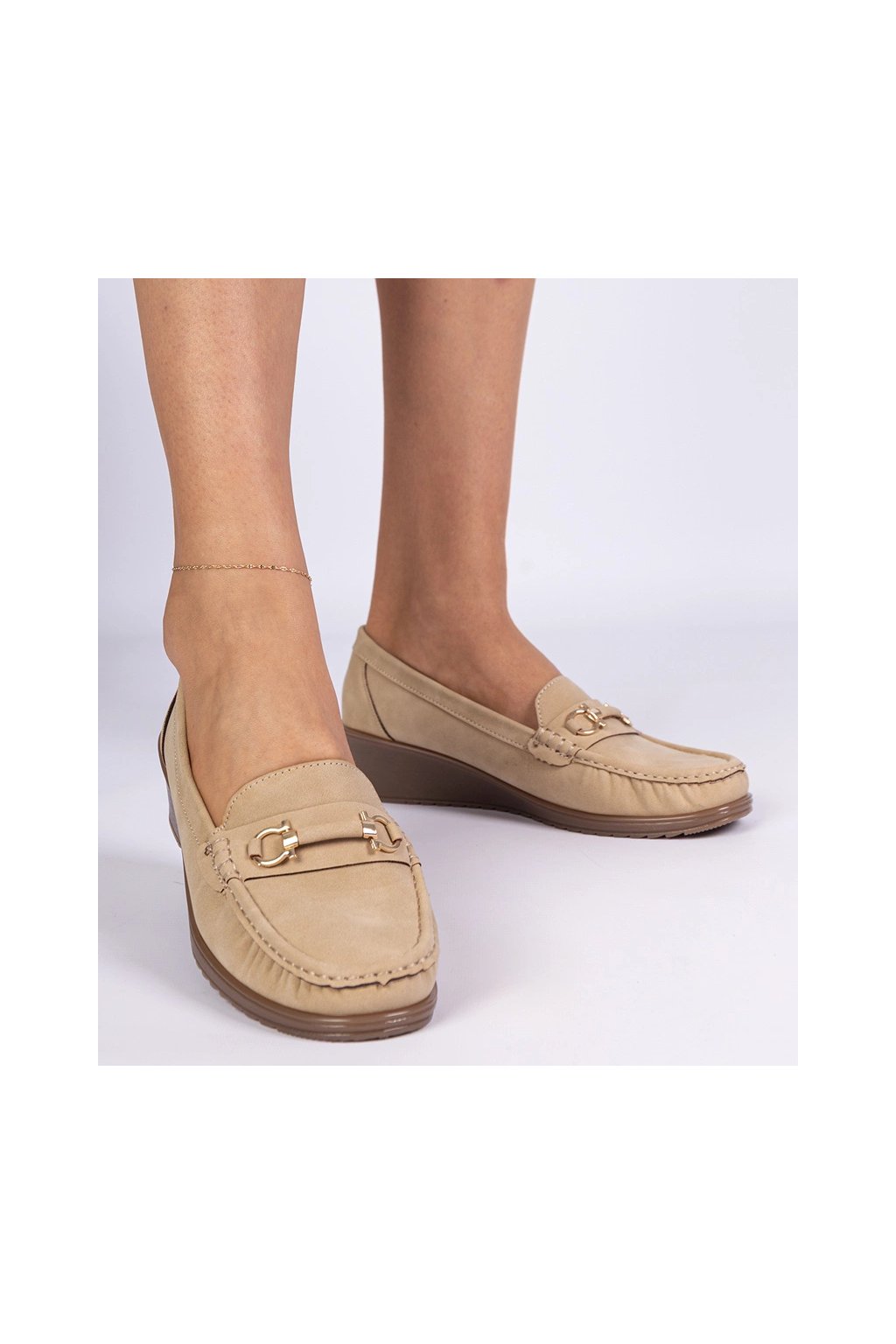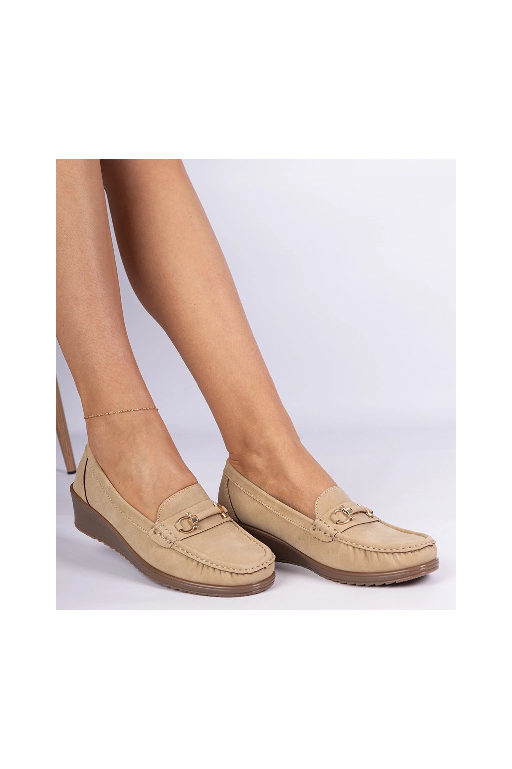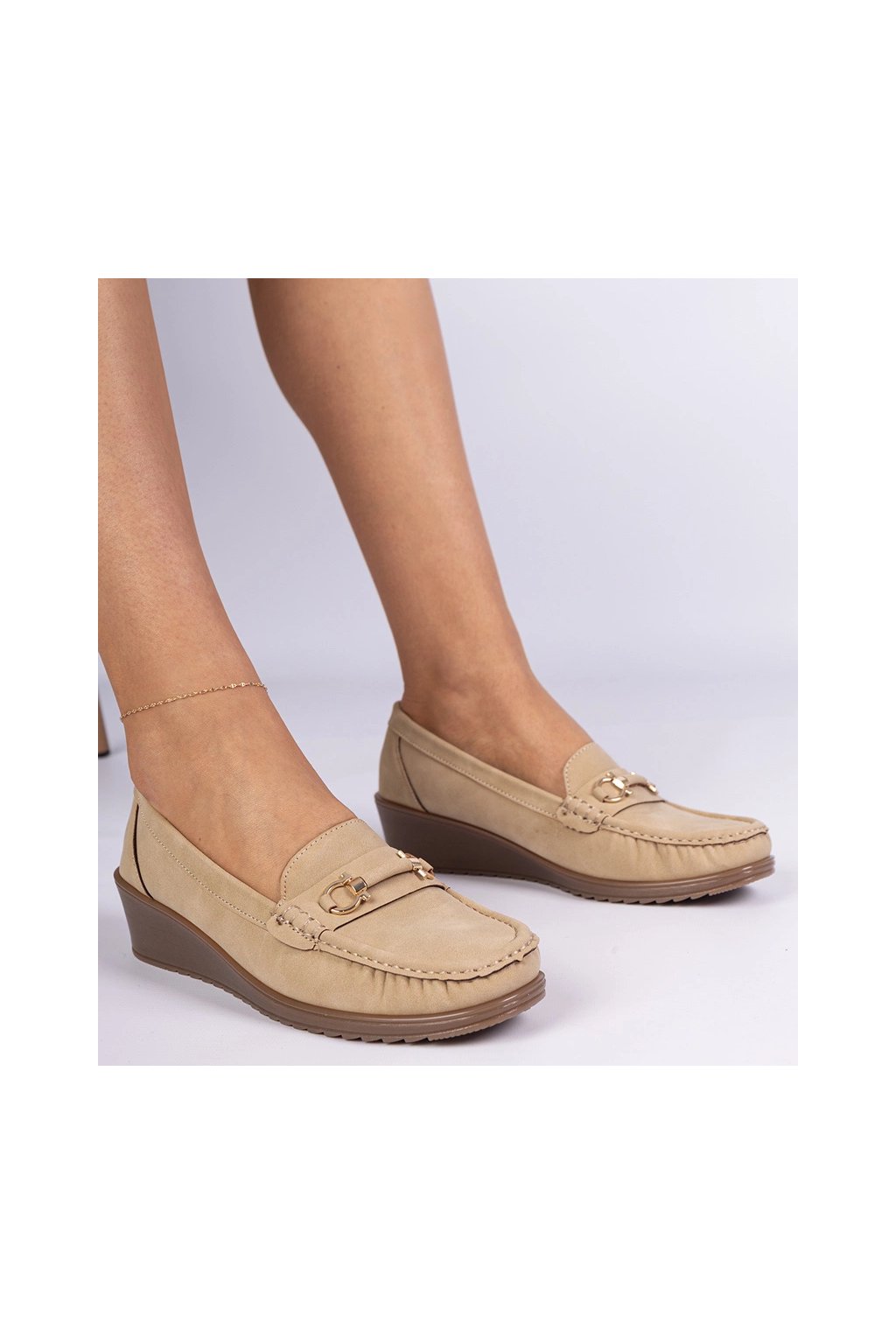 Hnedé dámske mokasíny na klinovom podpätku, Sambada QQ-10 KHAKI 38 - GM