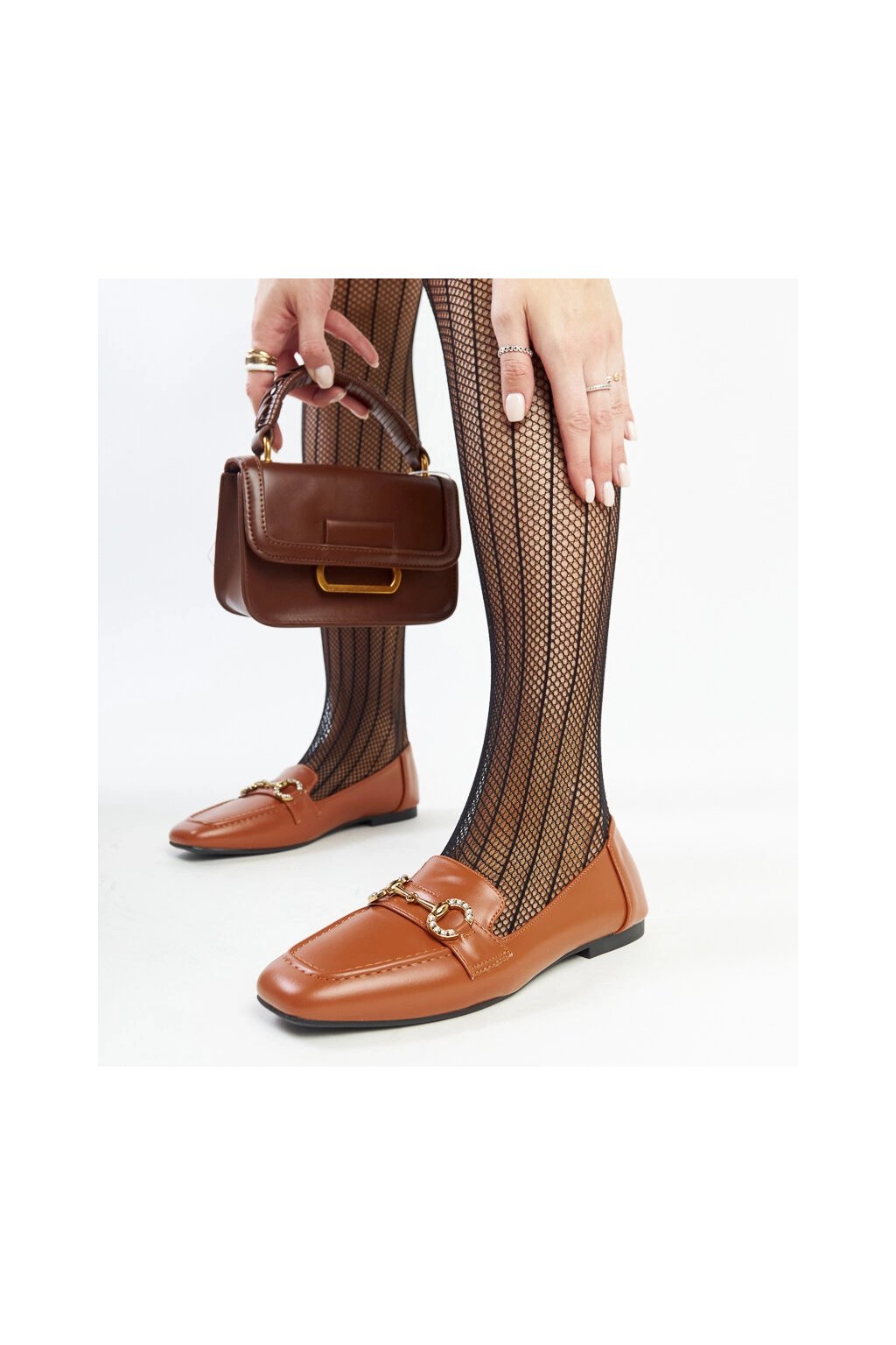 Hnedé dámske mokasíny s aplikáciou kamienkov Areebah 2578-4 CAMEL - GM