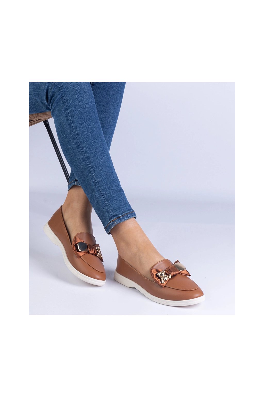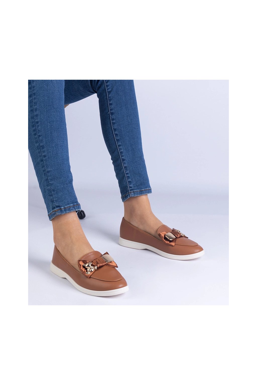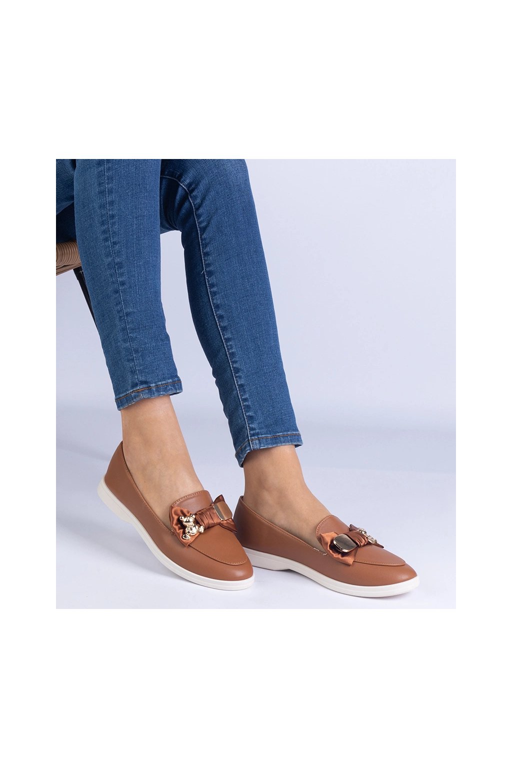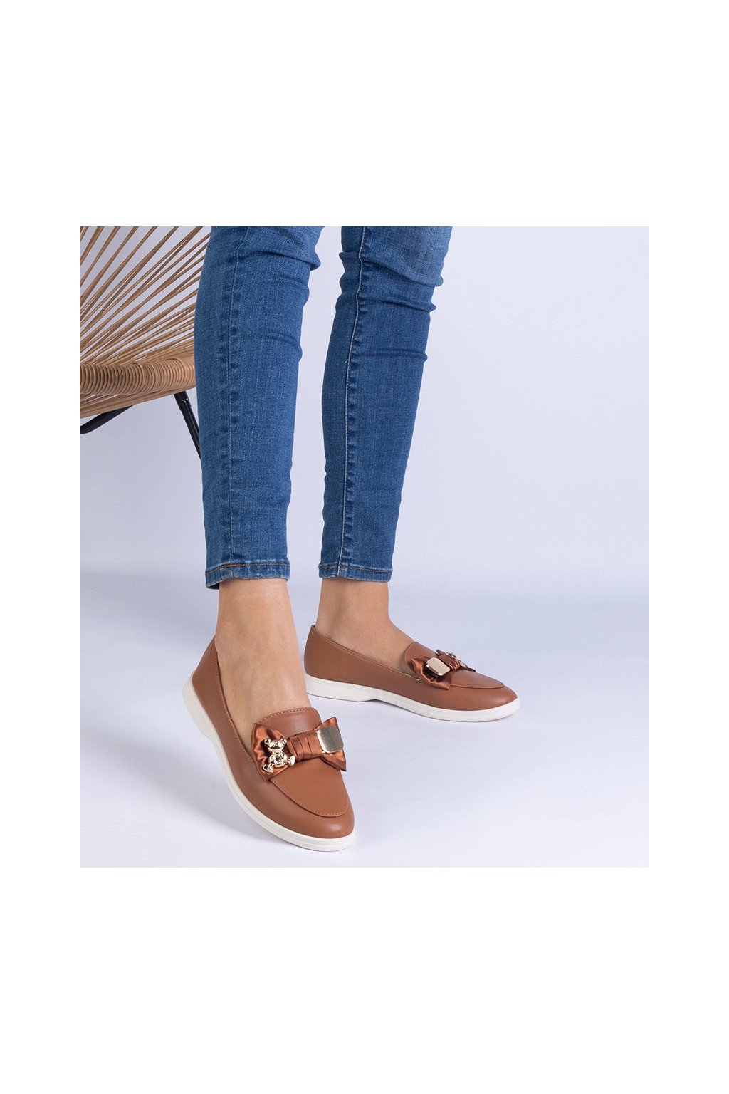 Hnedé dámske mokasíny s mašľou, kód DH-1145 CAMEL 38