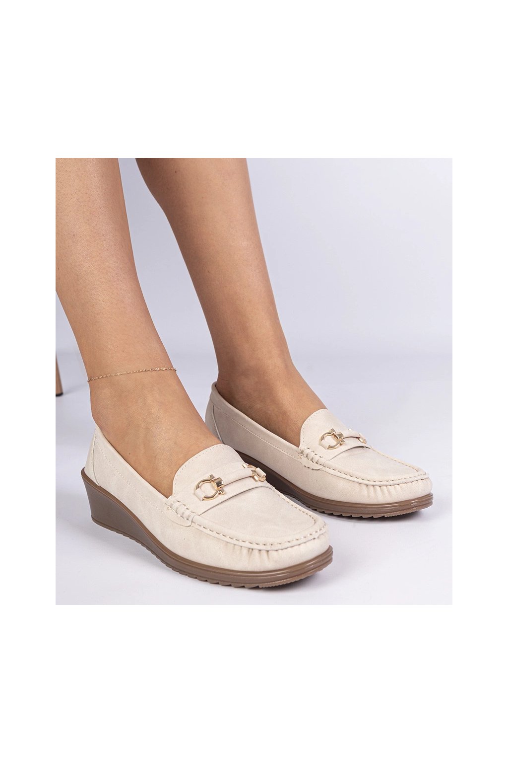 Hnedé dámske mokasíny na klinovom podpätku, Sambada GM