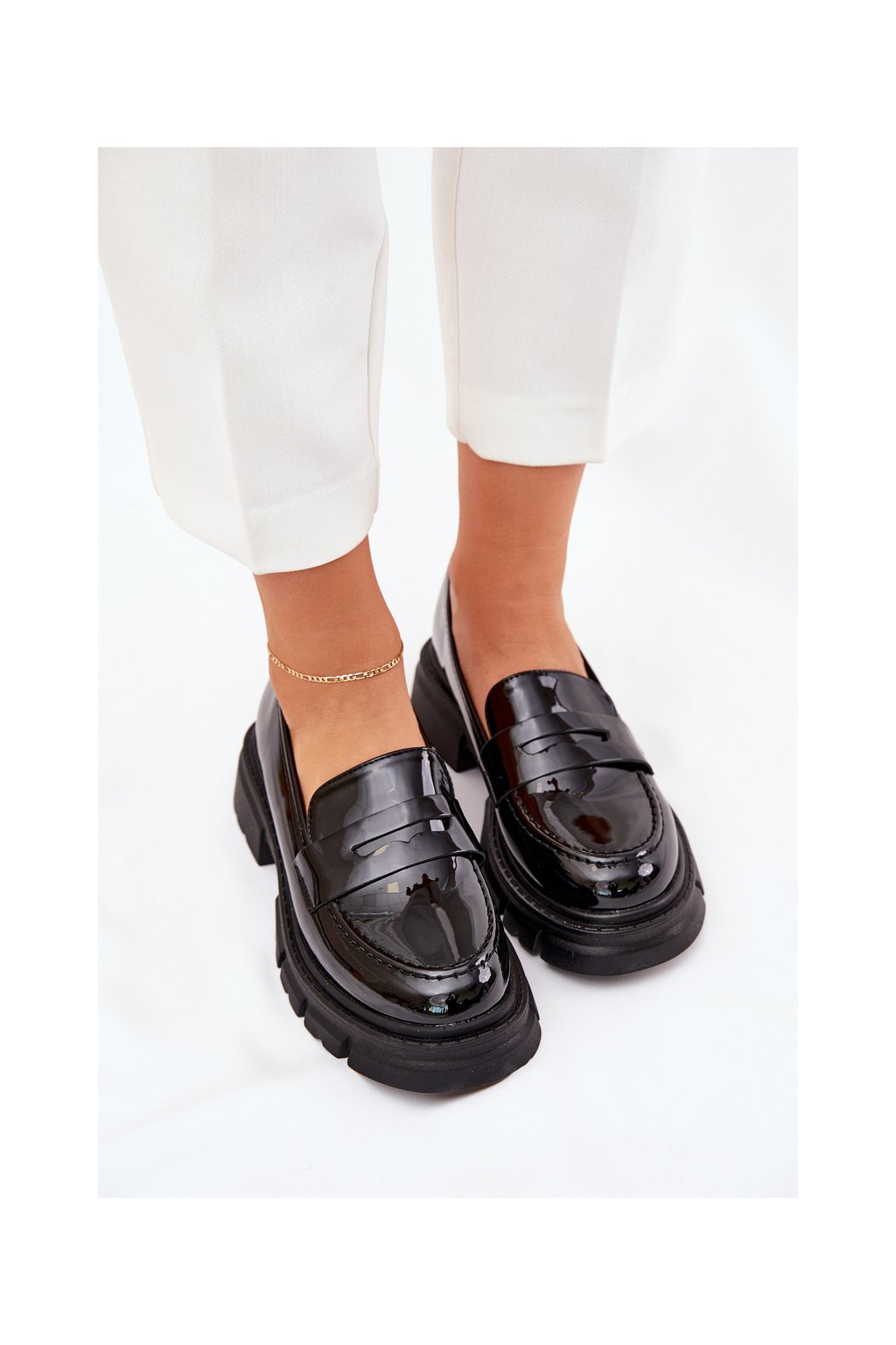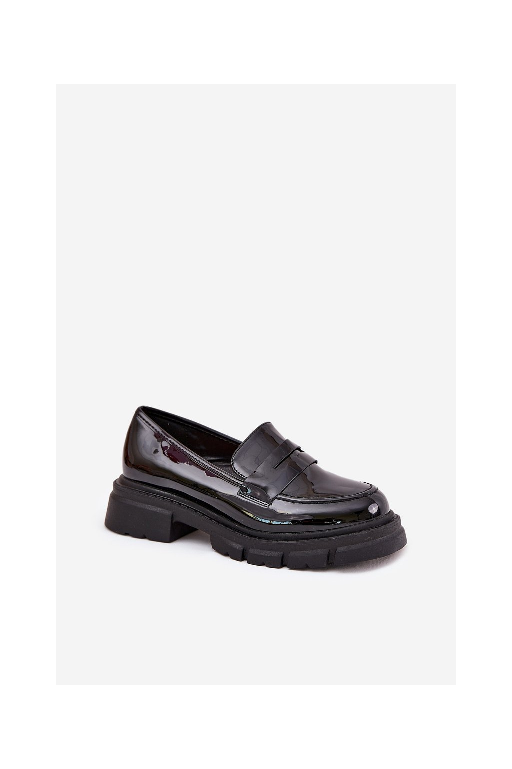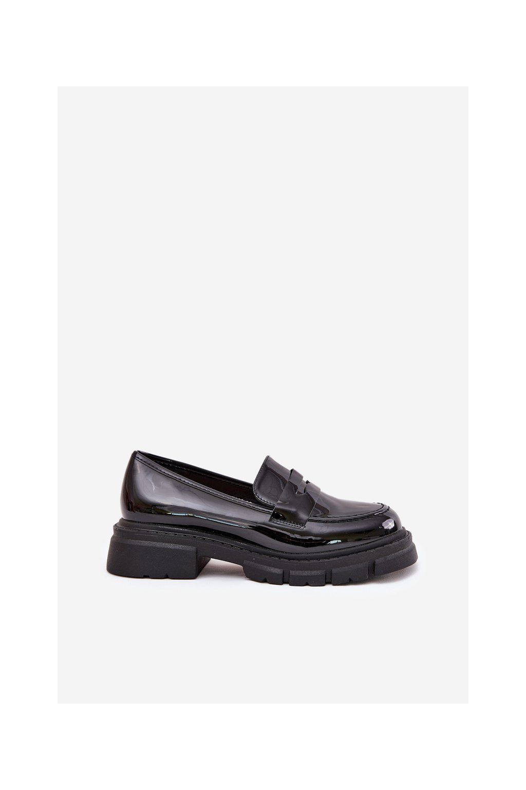 Čierne dámske lakované mokasíny z eko kože na rovnej podrážke, kód produktu 1-7028 BLACK