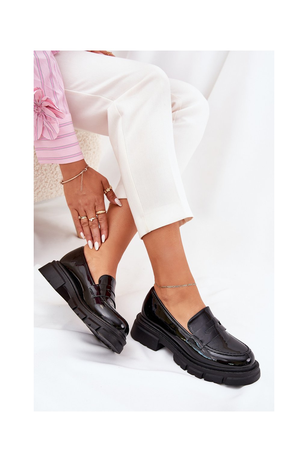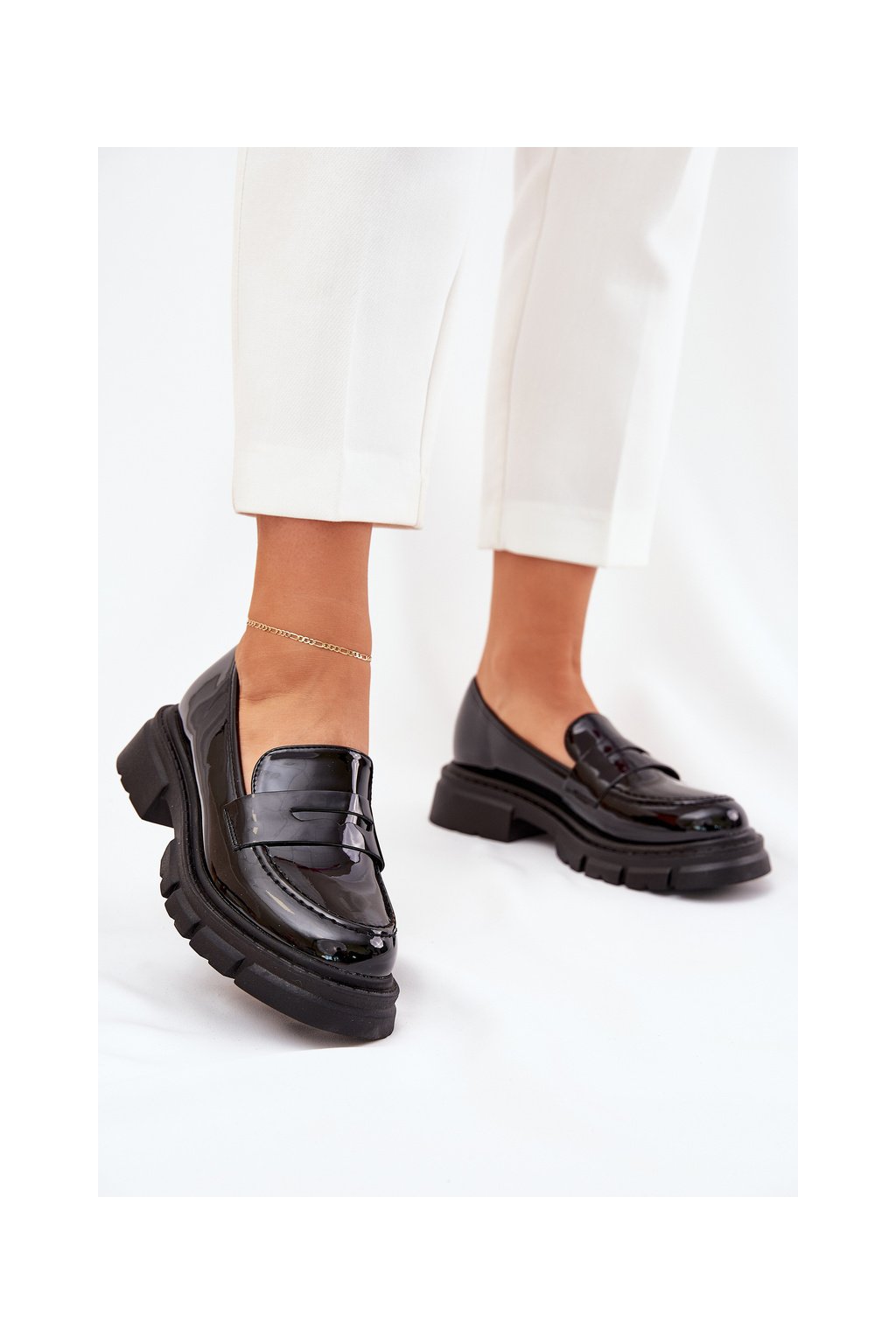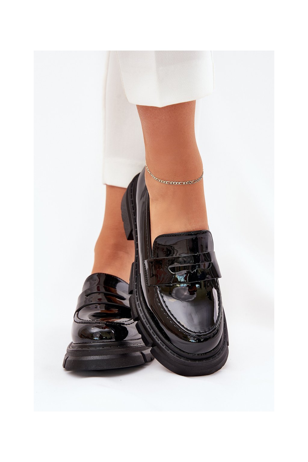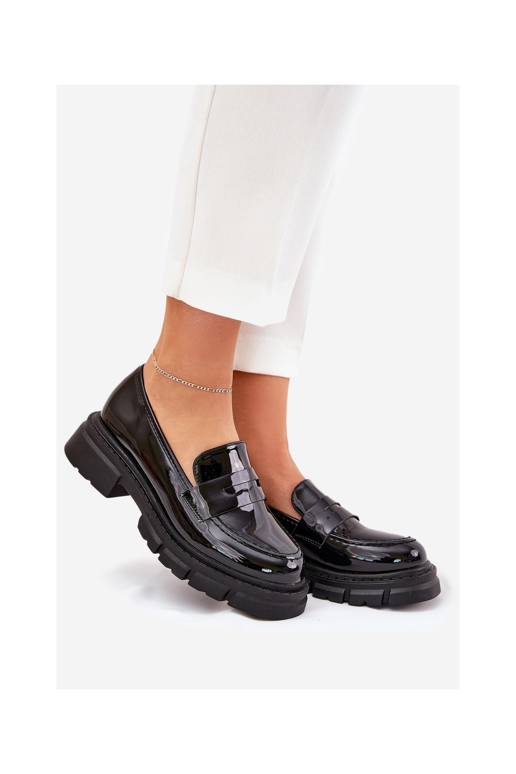 Čierne dámske lakované mokasíny z eko kože na rovnej podrážke, kód produktu 1-7028 BLACK