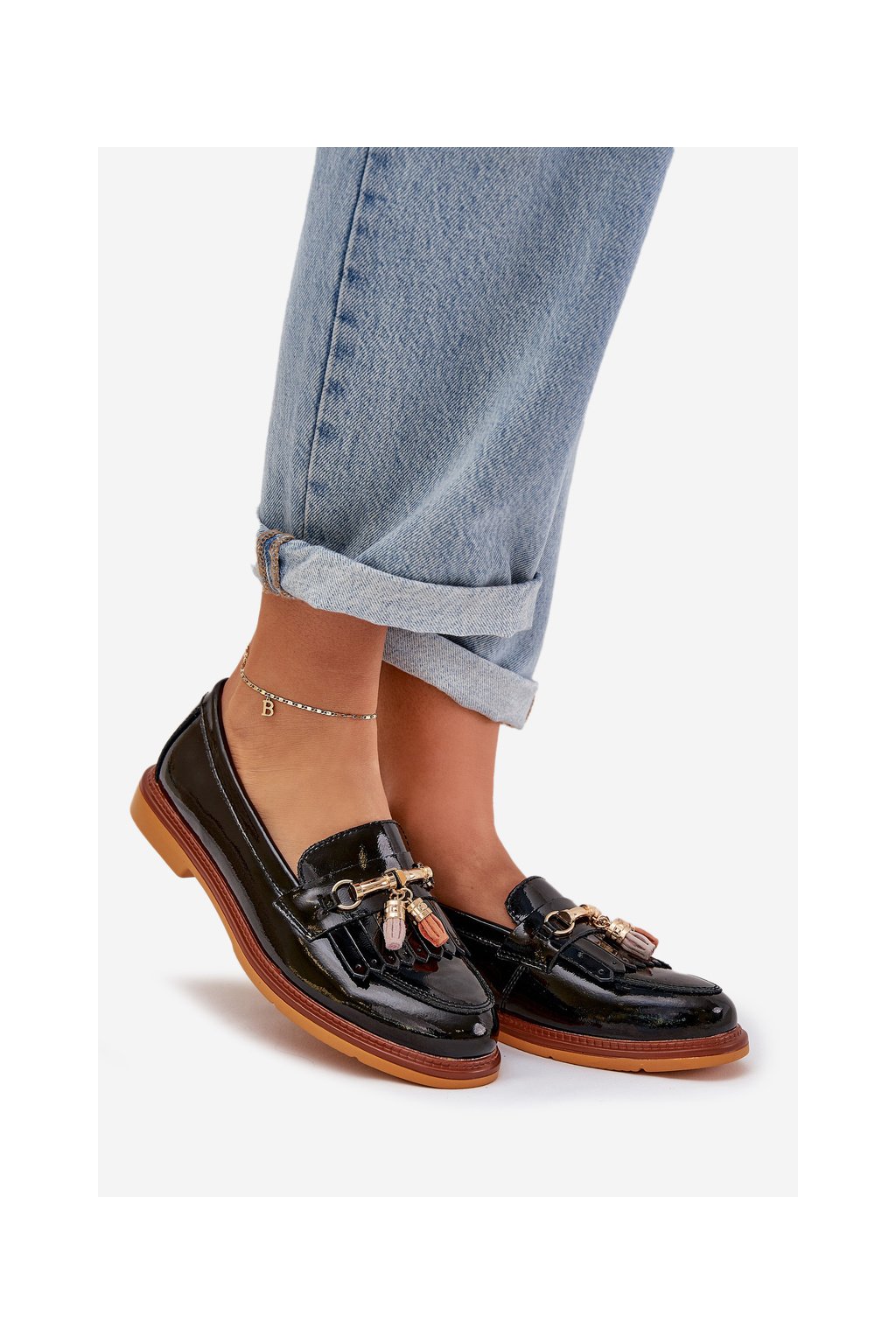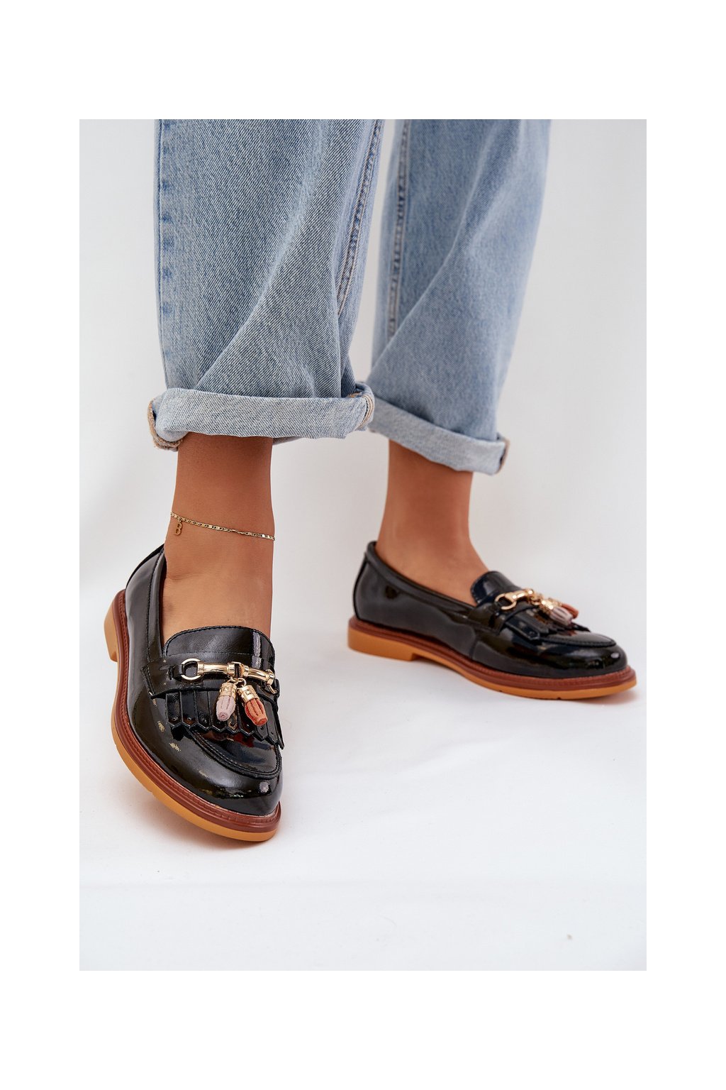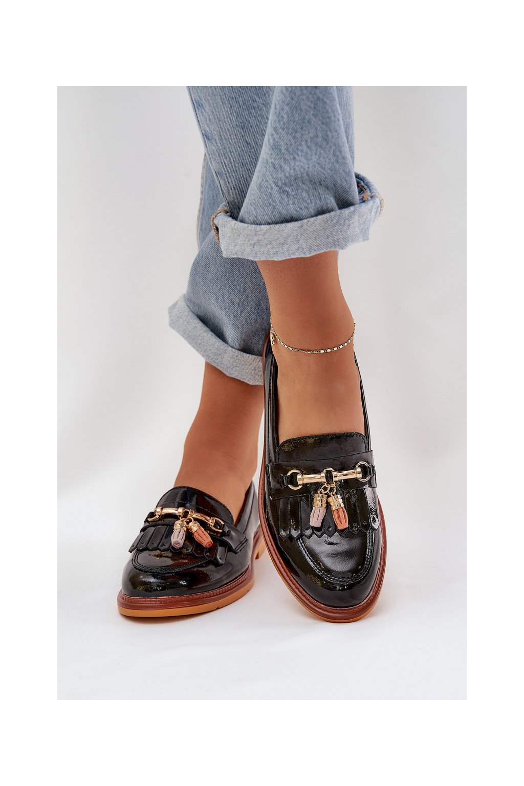 Čierne dámske lakované kožené mokasíny na rovnej podrážke S.Barski LR51-768A BLACK PT