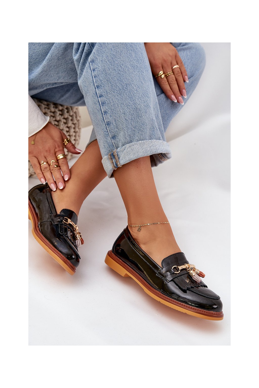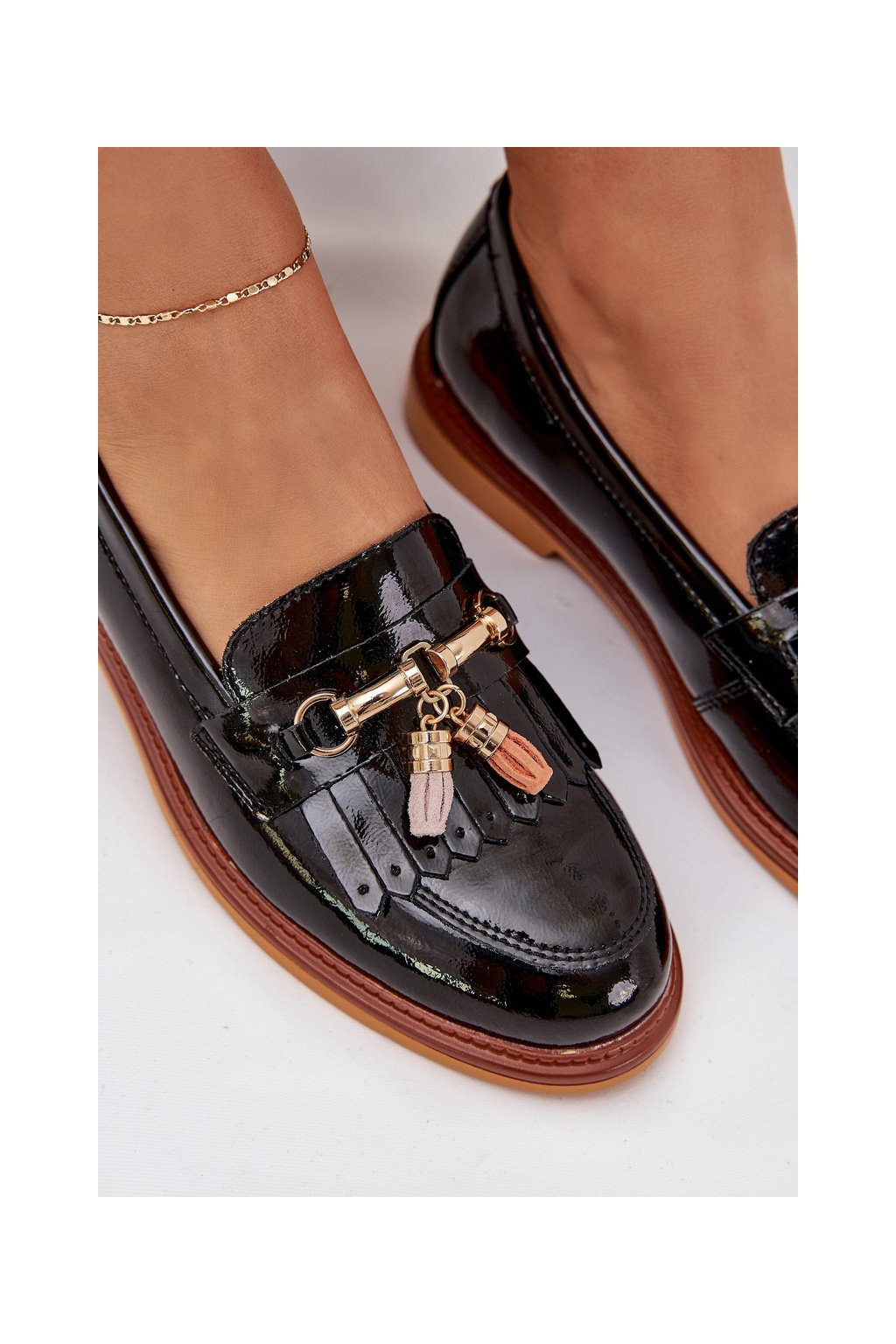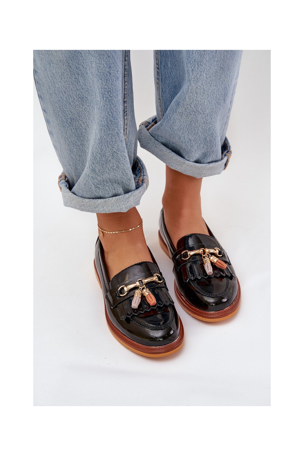 Čierne dámske lakované kožené mokasíny na rovnej podrážke S.Barski LR51-768A BLACK PT
