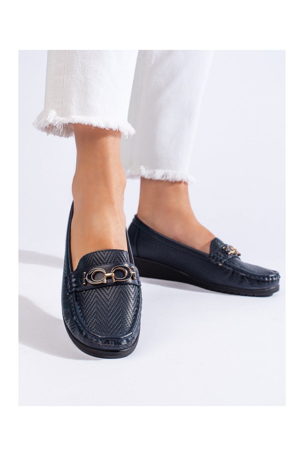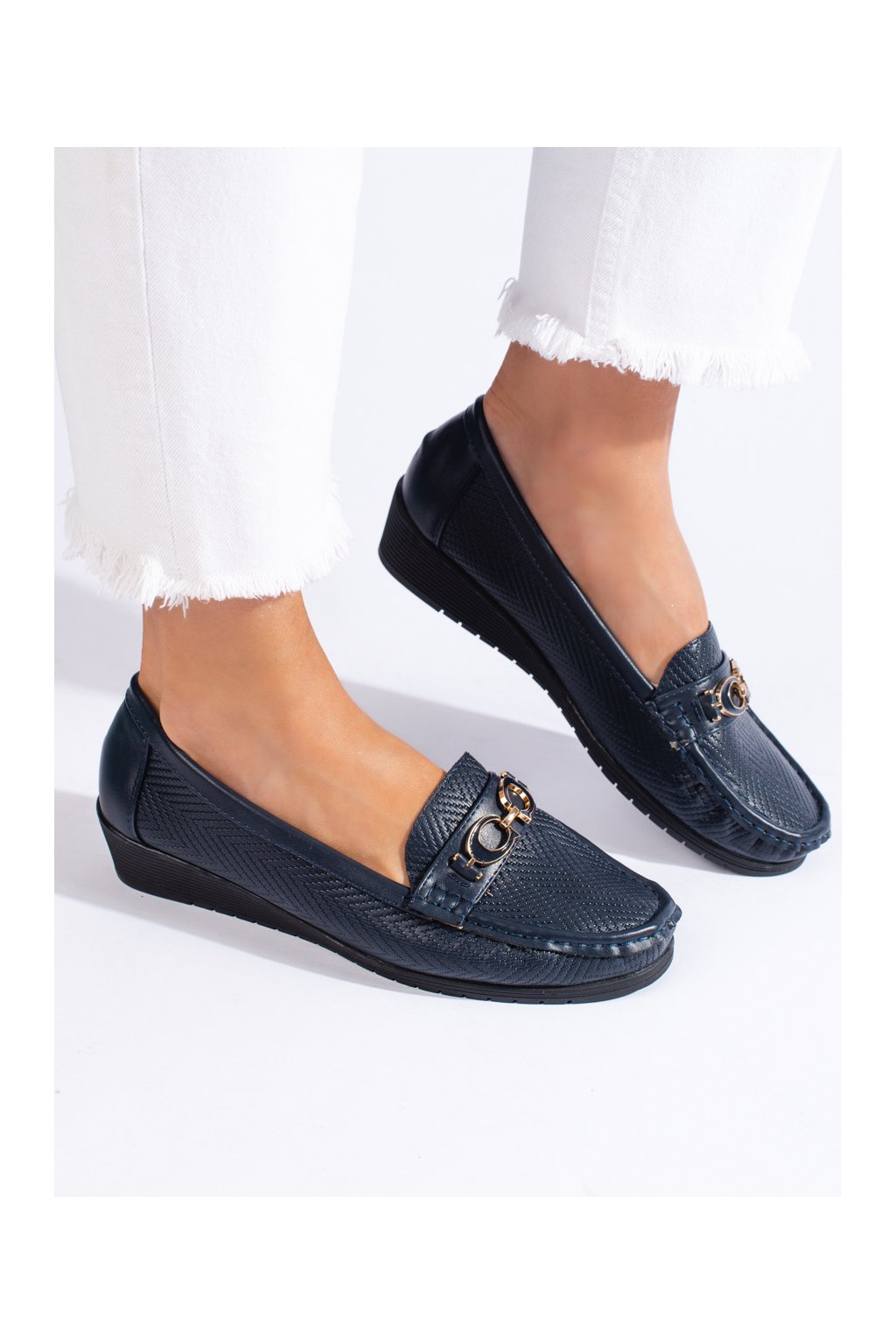 Modré dámske mokasíny na platforme z eko koženého materiálu, kód produktu 3866N