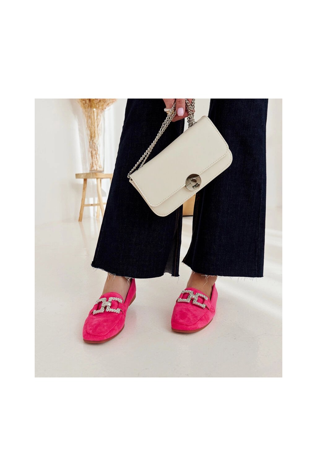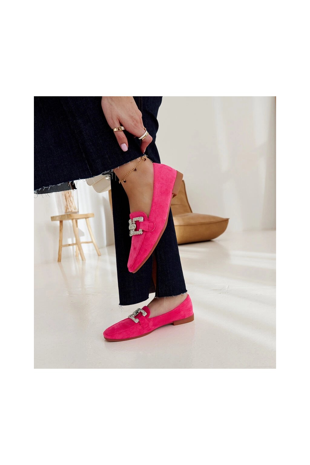 Ružové dámske mokasíny zdobené reťazom KuenS G418 FUSHIA 38 - GM