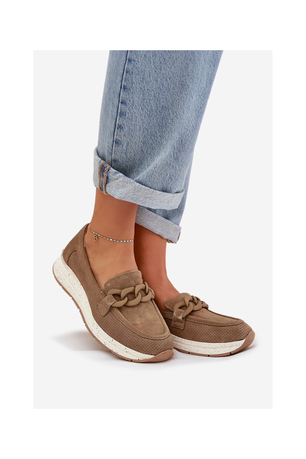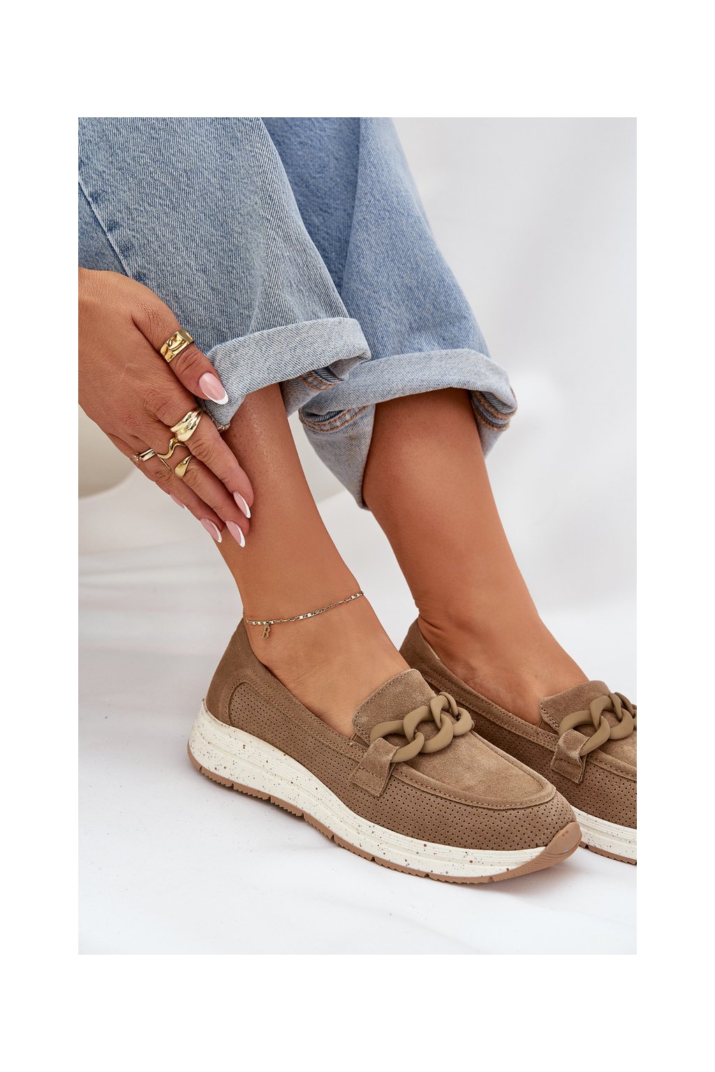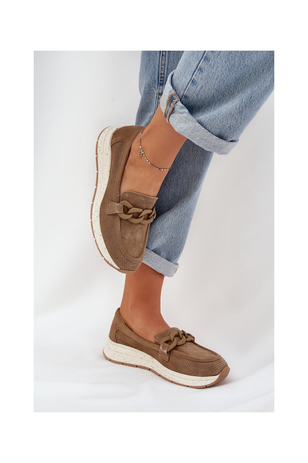 Hnedé dámske semišové mokasíny na rovnej podrážke s retiazkami TW552 BROWN
