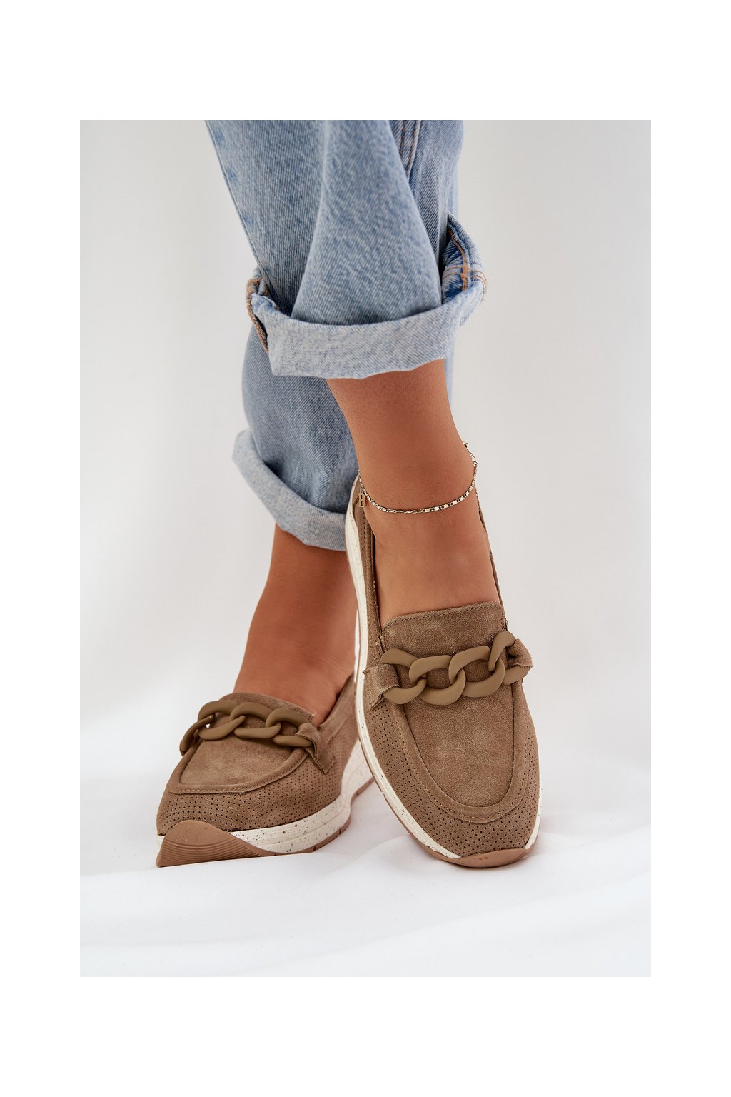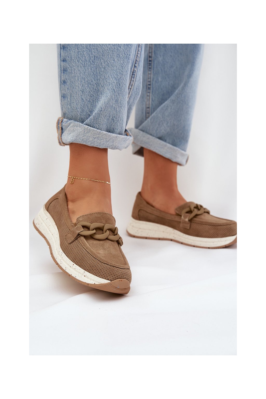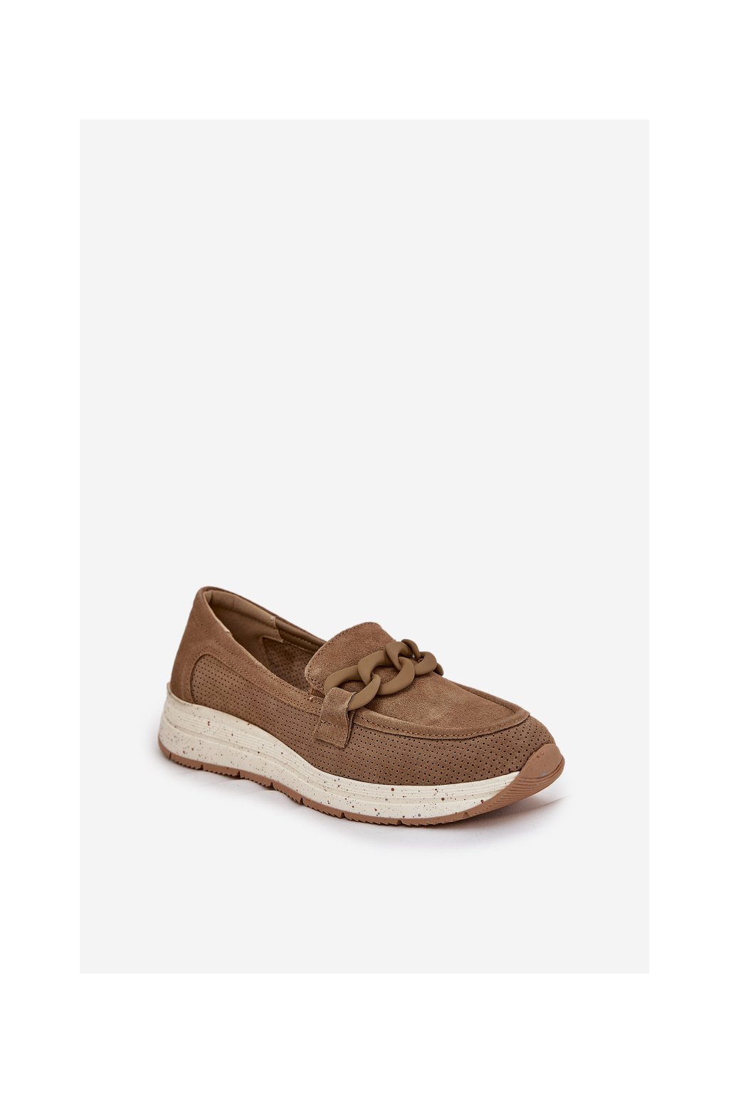 Hnedé dámske semišové mokasíny na rovnej podrážke s retiazkami TW552 BROWN