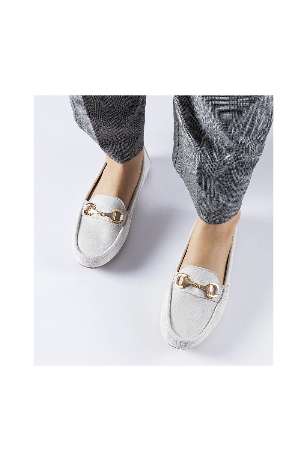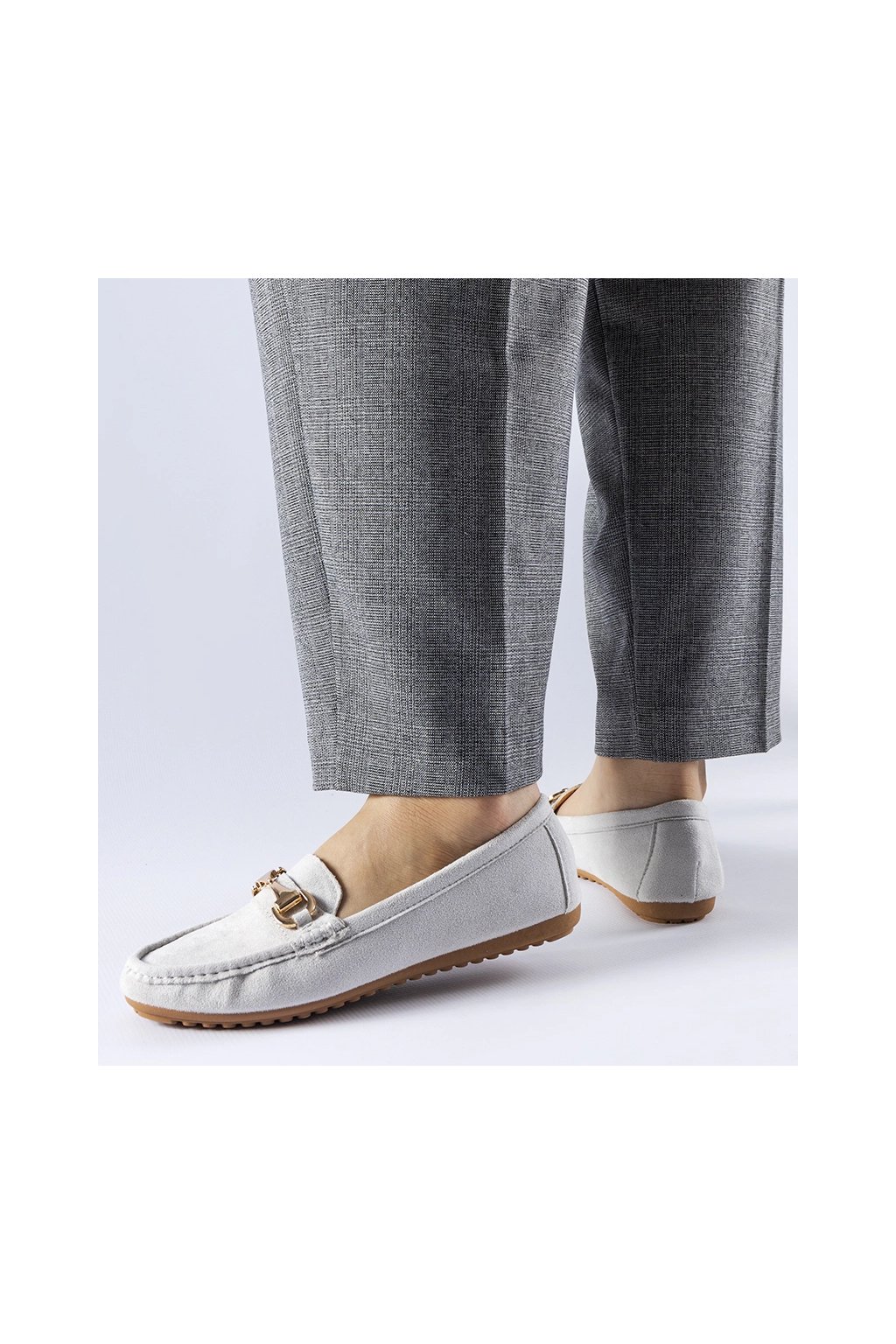 Sivé dámske mokasíny Fernanda zdobené pracou a klamerkami, kód produktu N22-867 GREY - GM