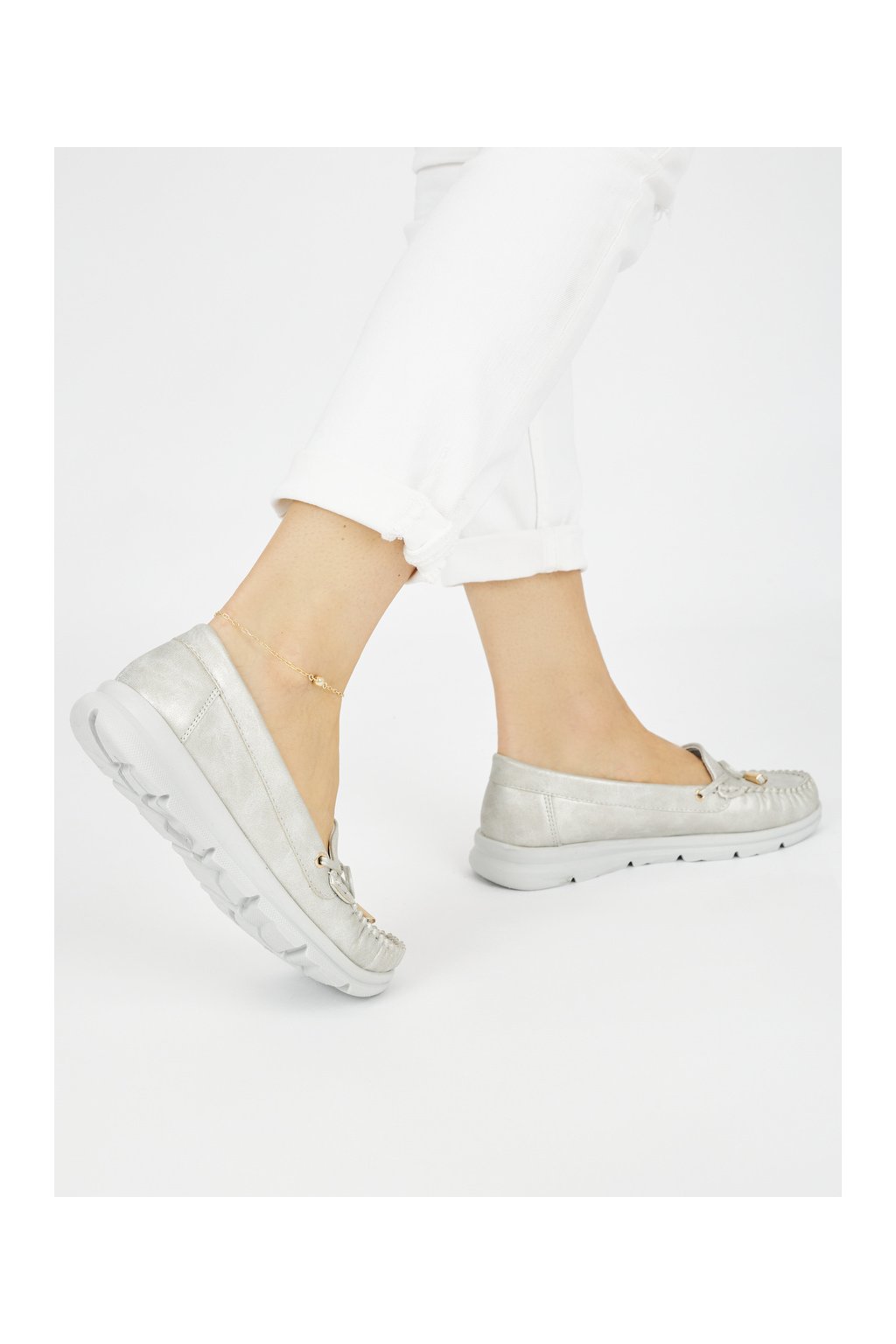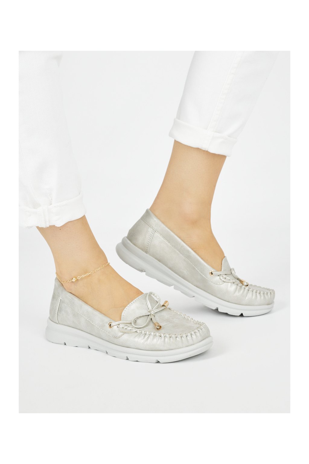 Stříbrné pohodlné mokasíny z ekologické kůže