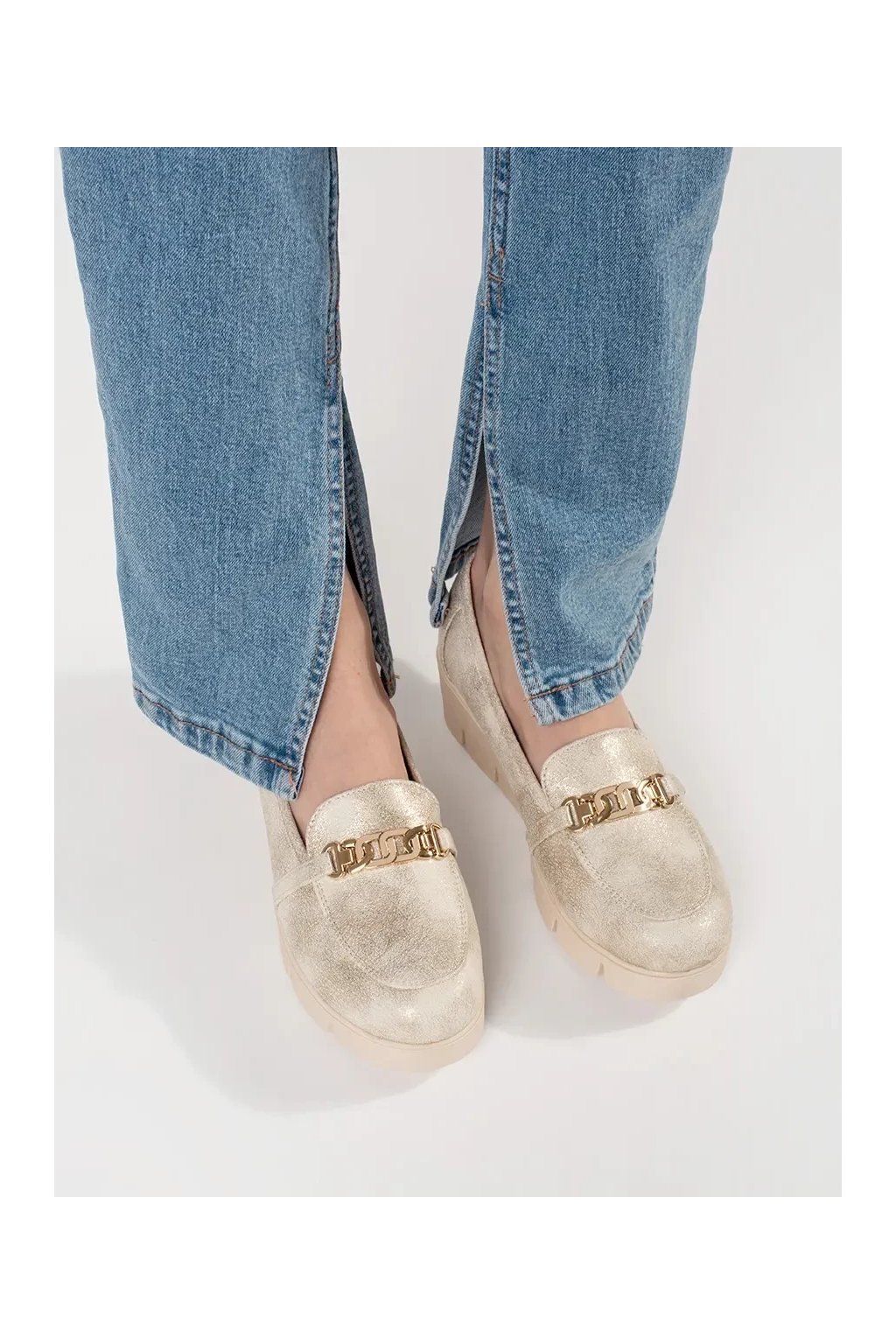 Zlaté mokasíny na koturnie s řetízkem - eleganci, pohodlí a styl v jednom