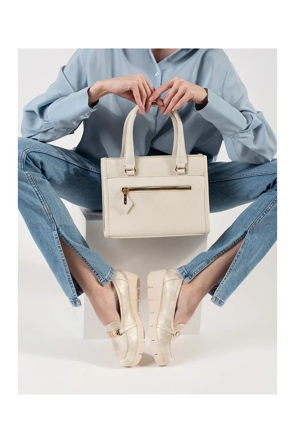 Naše zlaté mokasíny na koturnie s řetízkem jsou vyrobeny z vysoce kvalitní ekologické kůže, která je nejen odolná, ale také příjemná na dotek. Díky svému modernímu designu a zlaté barvě se stanou výrazným doplňkem každého outfitu. Navíc, řetízek na přední části boty dodává tomuto modelu jedinečný a elegantní vzhled.