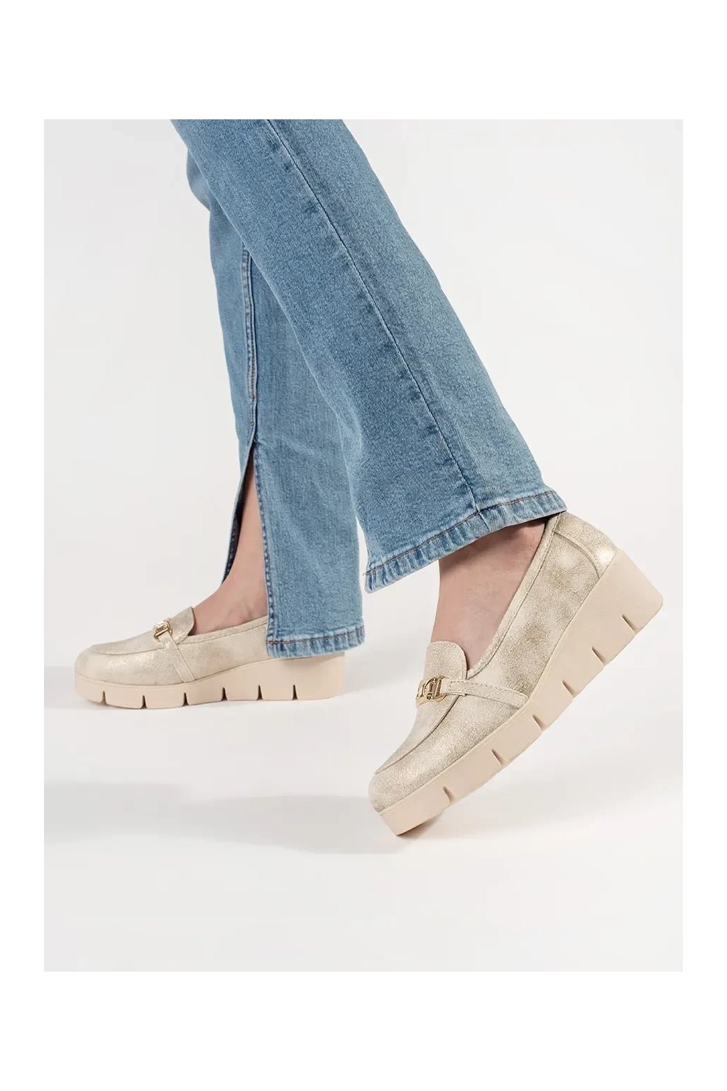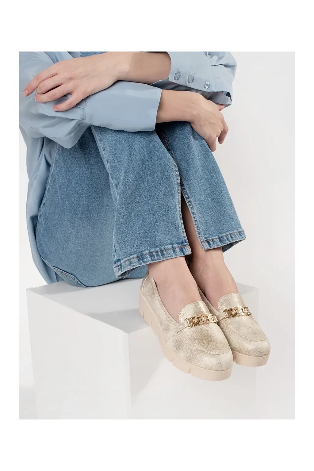 Zlaté dámske mokasíny na platforme, kód GD-FL6001L.GO