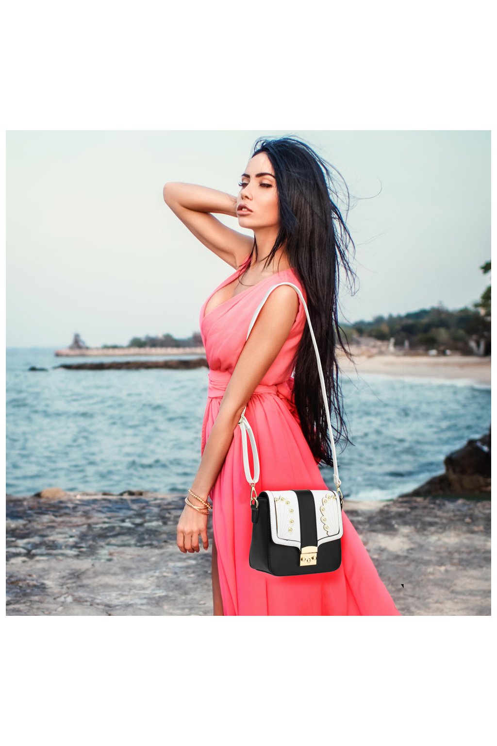 Čierna a biela dámska crossbody kabelka Anna Grace Rowan AG00628 z eko kože