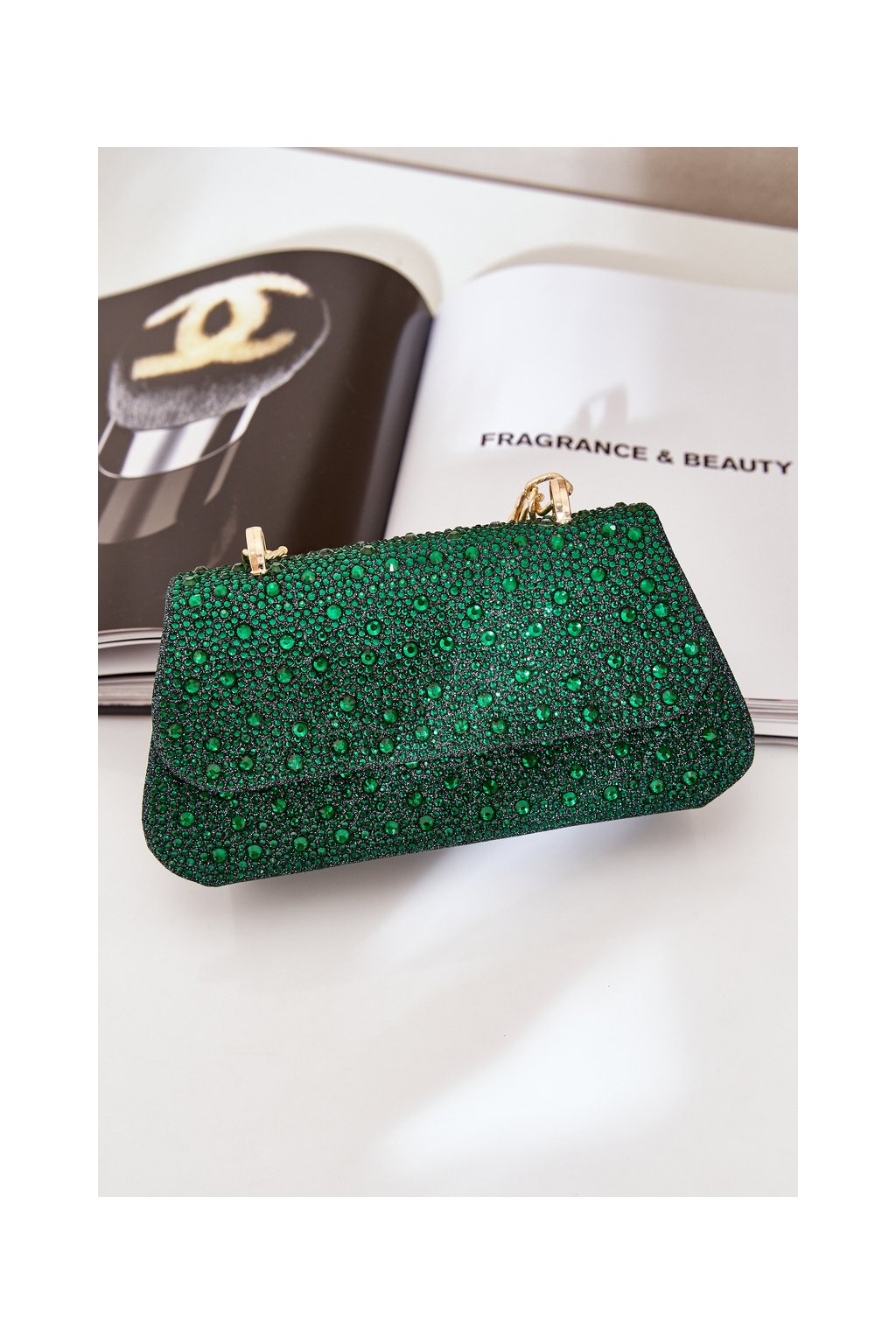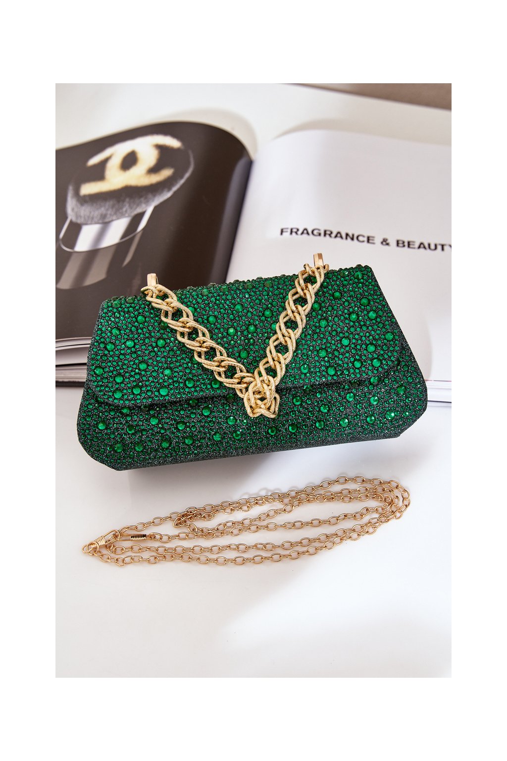 Dámska zelená textilná kabelka na večer s odnímateľnou retiazkou, kód produktu MD5168 BLK GREEN