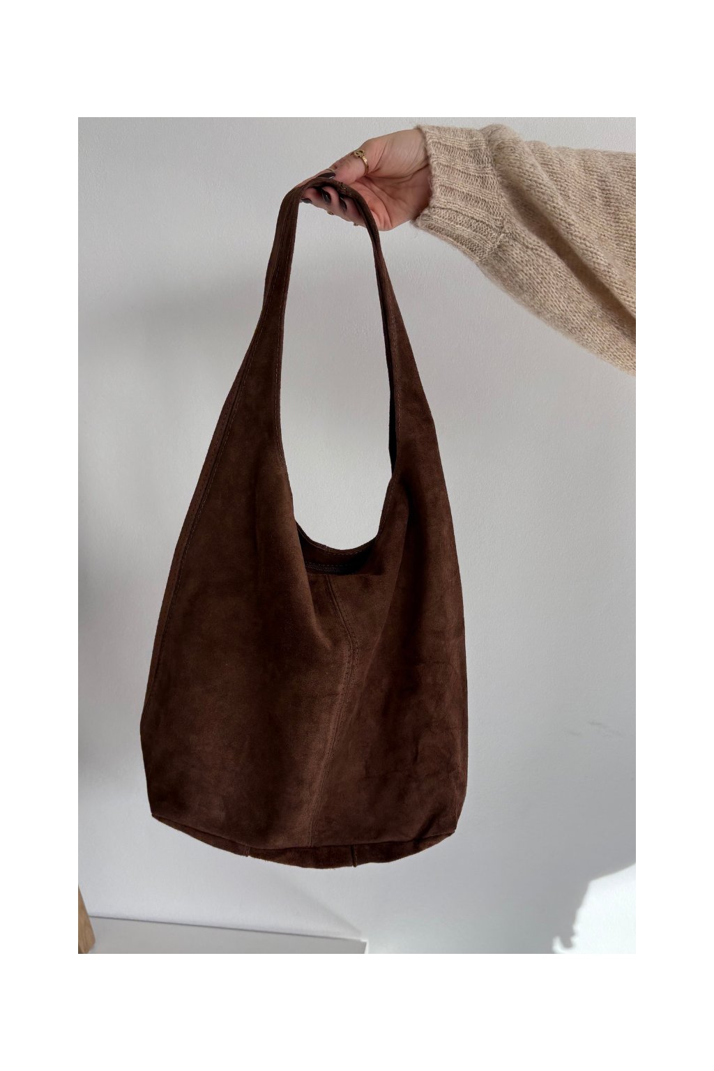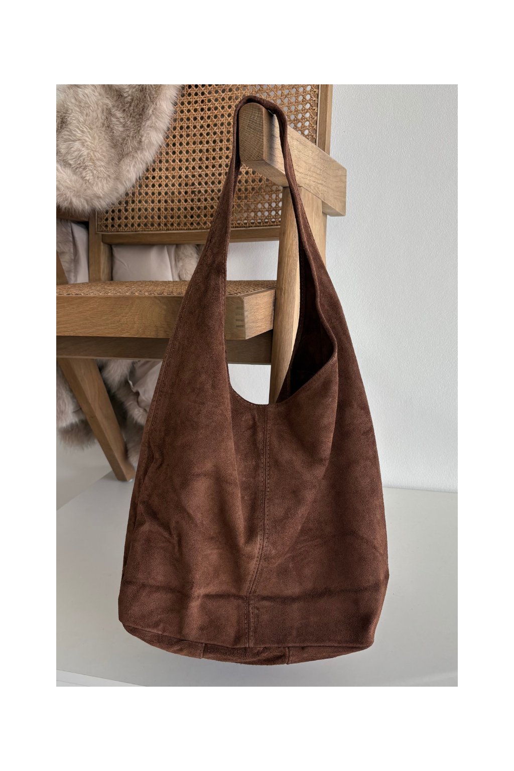 Táto klasická kabelka z prírodnej semišovej kože je dokonalým doplnkom, ktorý nikdy nevyjde z módy.