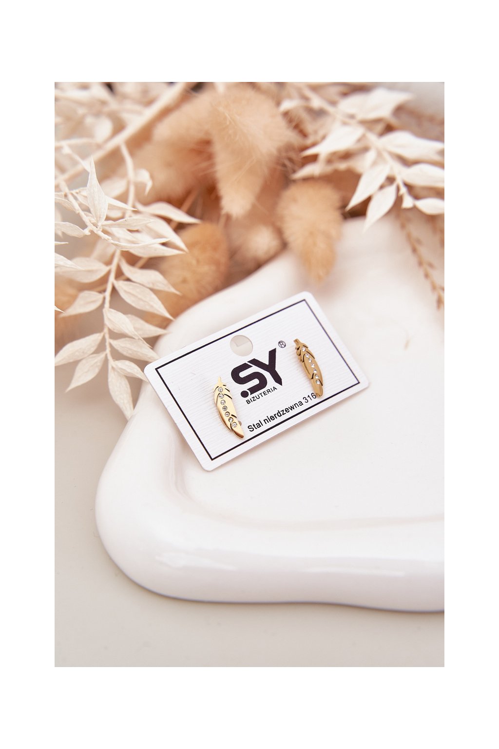 Náušnice listy se zirkony nerezová ocel zlaté / KOL.40656