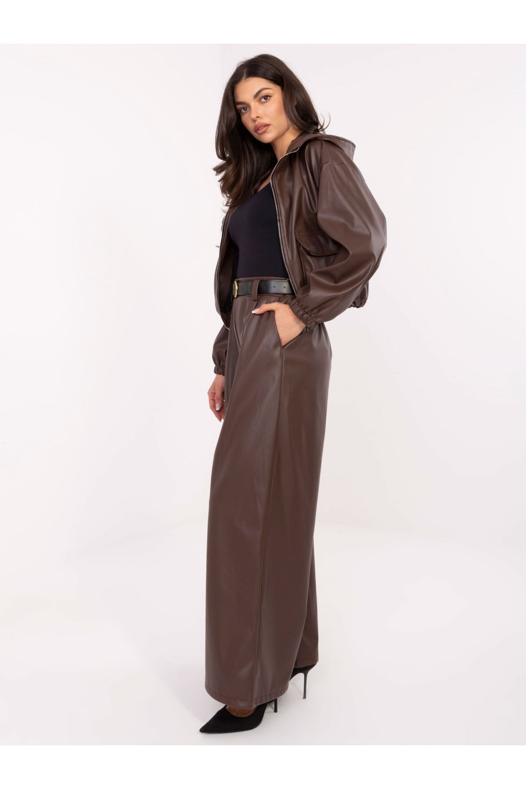 Miery modelky: výška 173 cm, obvod hrudníka 85 cm, obvod pása 62 cm, obvod bokov 95 cm.