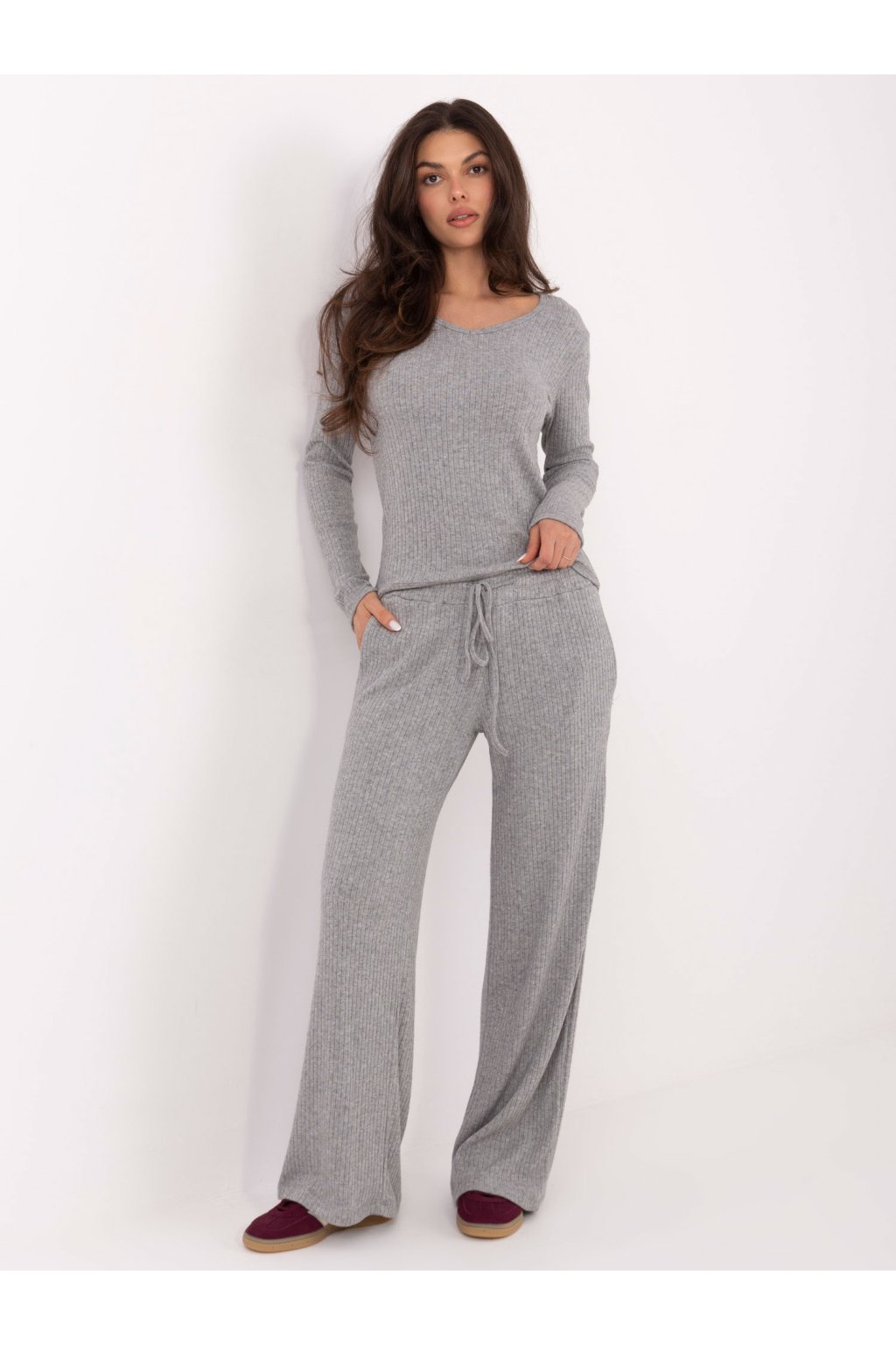 Miery modelky: výška 173 cm, obvod hrudníka 85 cm, obvod pása 62 cm, obvod bokov 95 cm. Rozmery svetra vo veľkosti one size merané na rovnej ploche: šírka pod pazuchami – 43 cm, šírka v bokoch – 39 cm, dĺžka rukávov – 59 cm (od švu), celková dĺžka – 61 cm. Zloženie materiálu: 60 % viskóza, 25 % polyester, 25 % nylonPokyny na pranie: prať v práčke na 30 °C