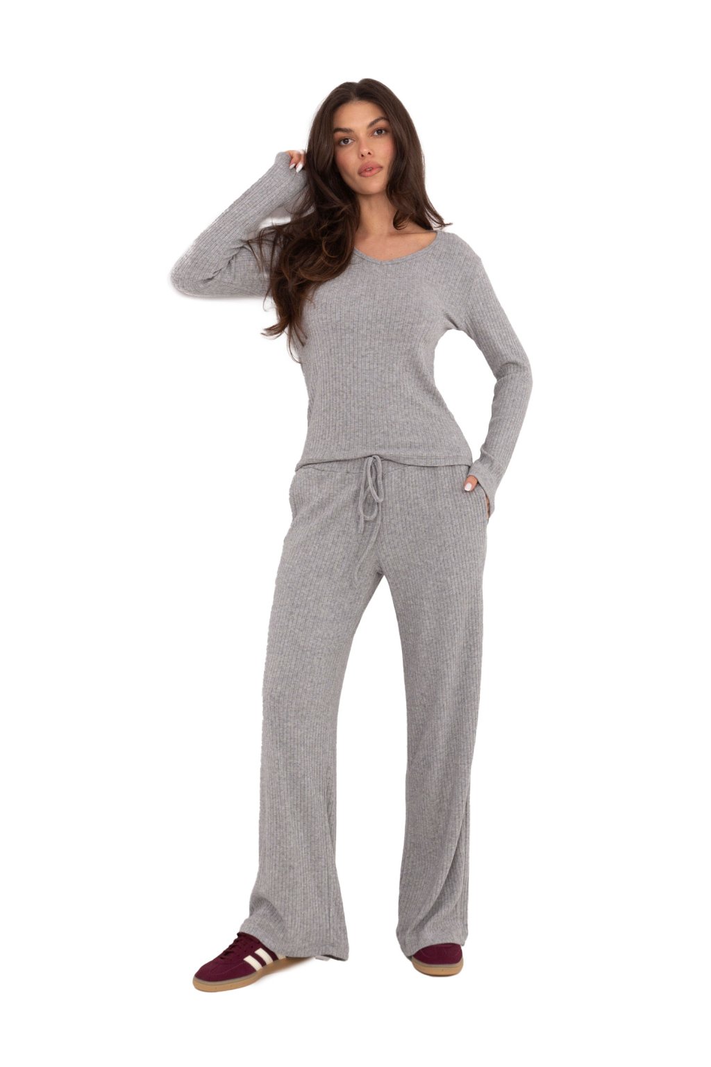 Modelka má na sebe veľkosť one size.