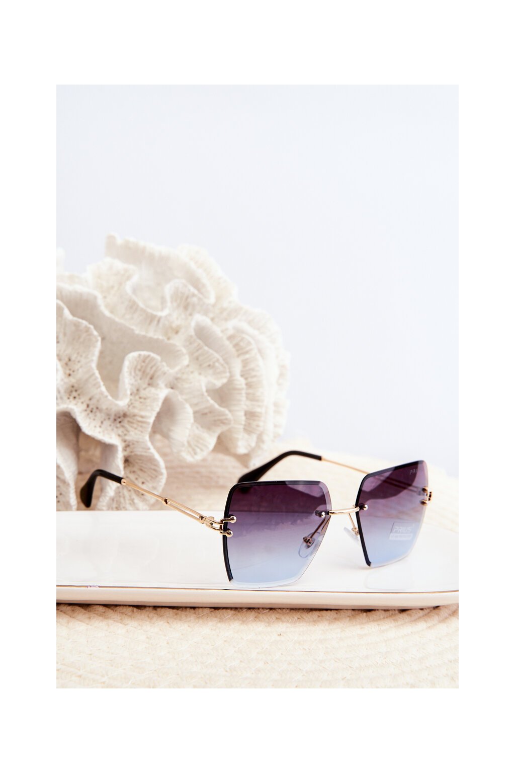 Dámske zlaté slnečné okuliare s modrými tónovanými sklami, kód produktu OK.32256