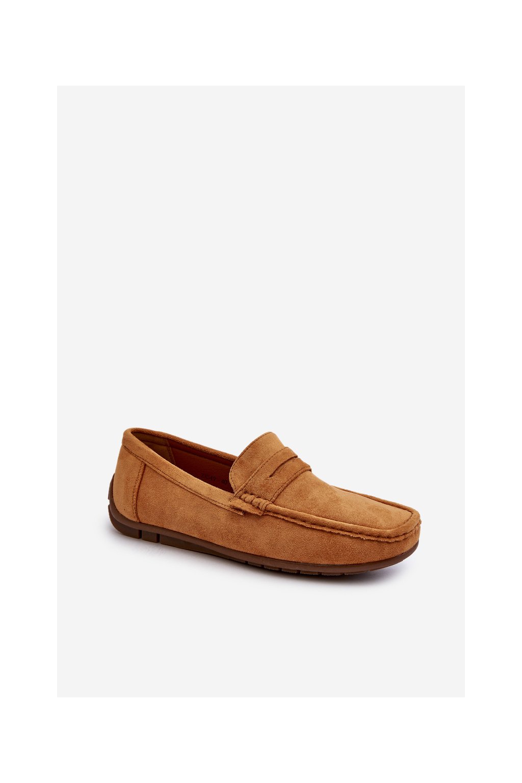 Pánske tmavomodré semišové mokasíny na rovnej podrážke EKO semiš, kód produktu ZX549 CAMEL