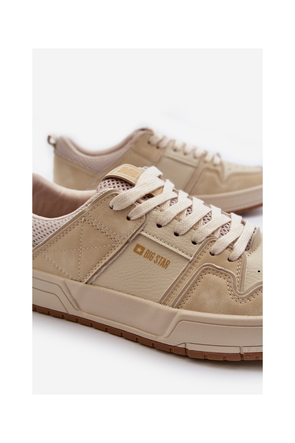 Pánske hnedé tenisky z eko kože na rovnej podrážke Big Star NN174095 BEŻ