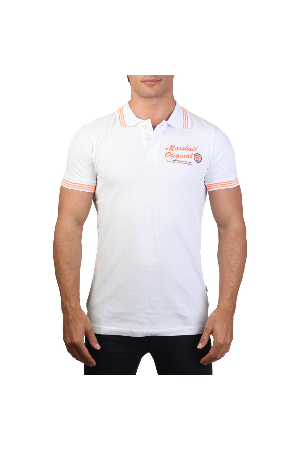 Pánske biele polo tričko Marshall Original zo 100% bavlny, kód produktu neznámy.