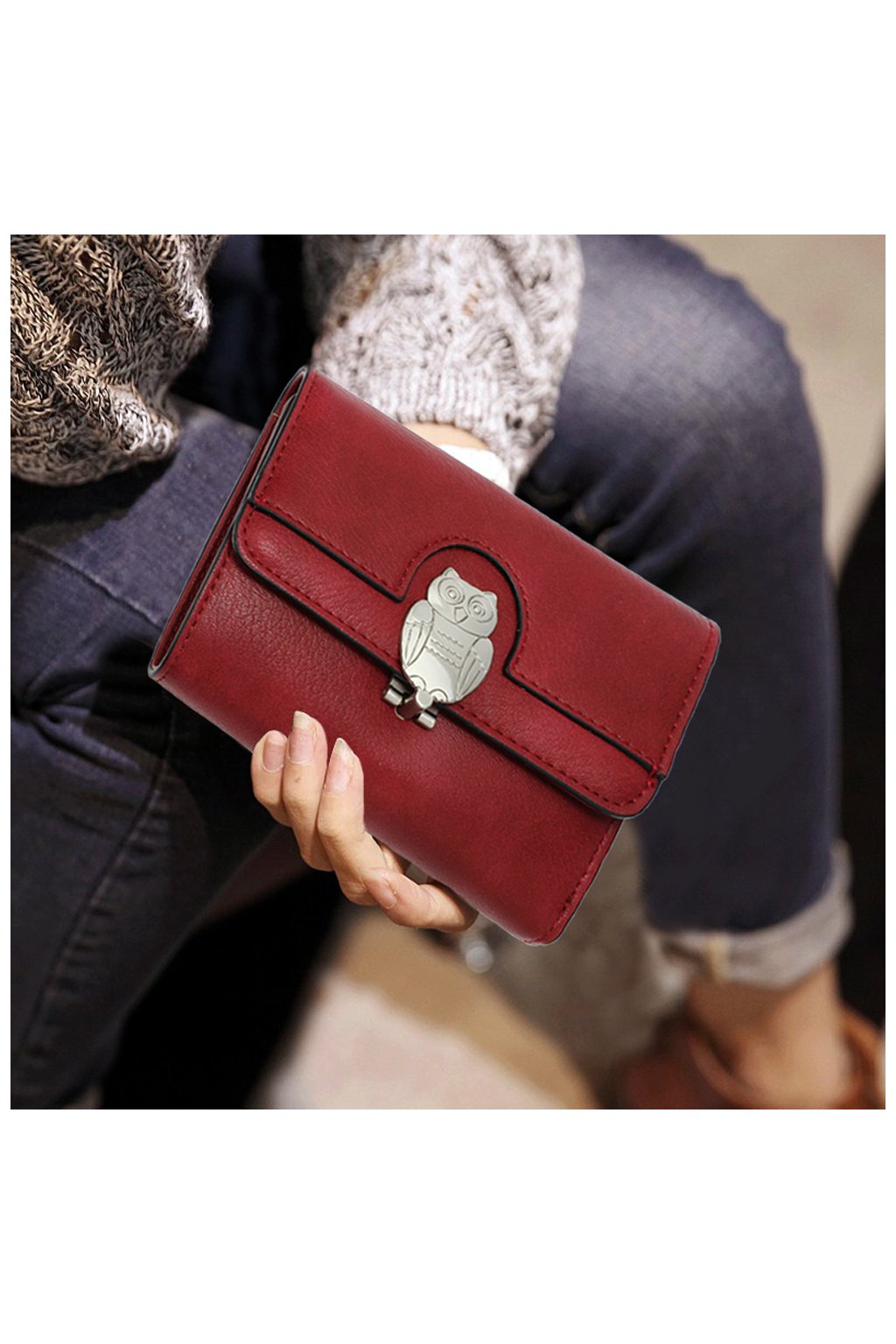 Bordová dámska peňaženka s prídavným ramienkom s eko koženého materiálu Flap sova AGP1102
