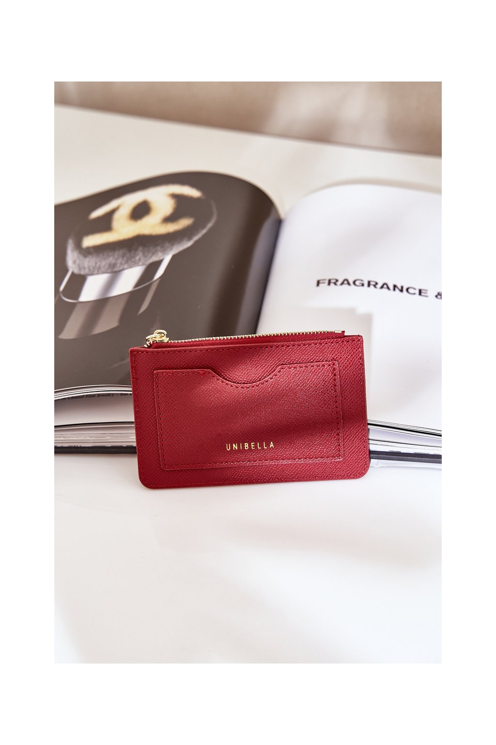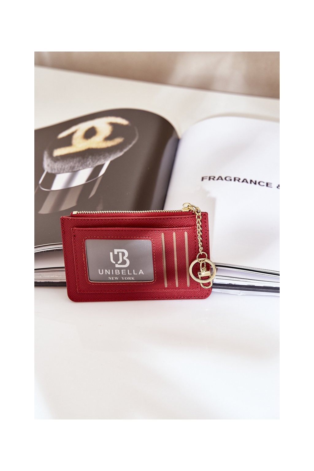 Dámska červená malá peňaženka z eko kože s priehradkou na karty a zlatým príveskom, kód produktu PORTFEL YX2451 RED