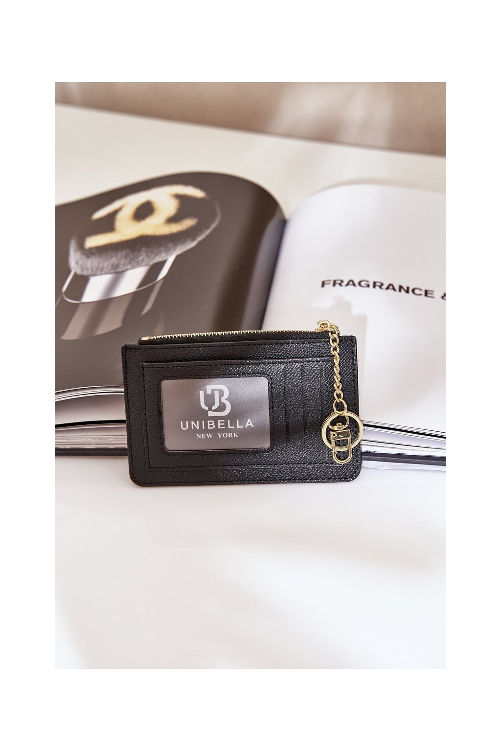 Zapína sa na zips a zaisťuje bezpečné uloženie drobných predmetov. Na zadnej strane sa nachádza praktická priehradka na karty, ideálna na každodenné použitie. Celkový vzhľad dotvára zlatý prívesok, ktorý dodáva šarm a jedinečný charakter. Kompaktný a praktický doplnok, ktorý sa hodí do každej kabelky.Rozmery:
