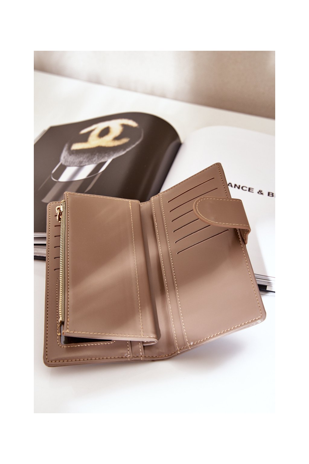 Dámska hnedá veľká peňaženka z eko kože, kód produktu PORTFEL YX2440 KHAKI