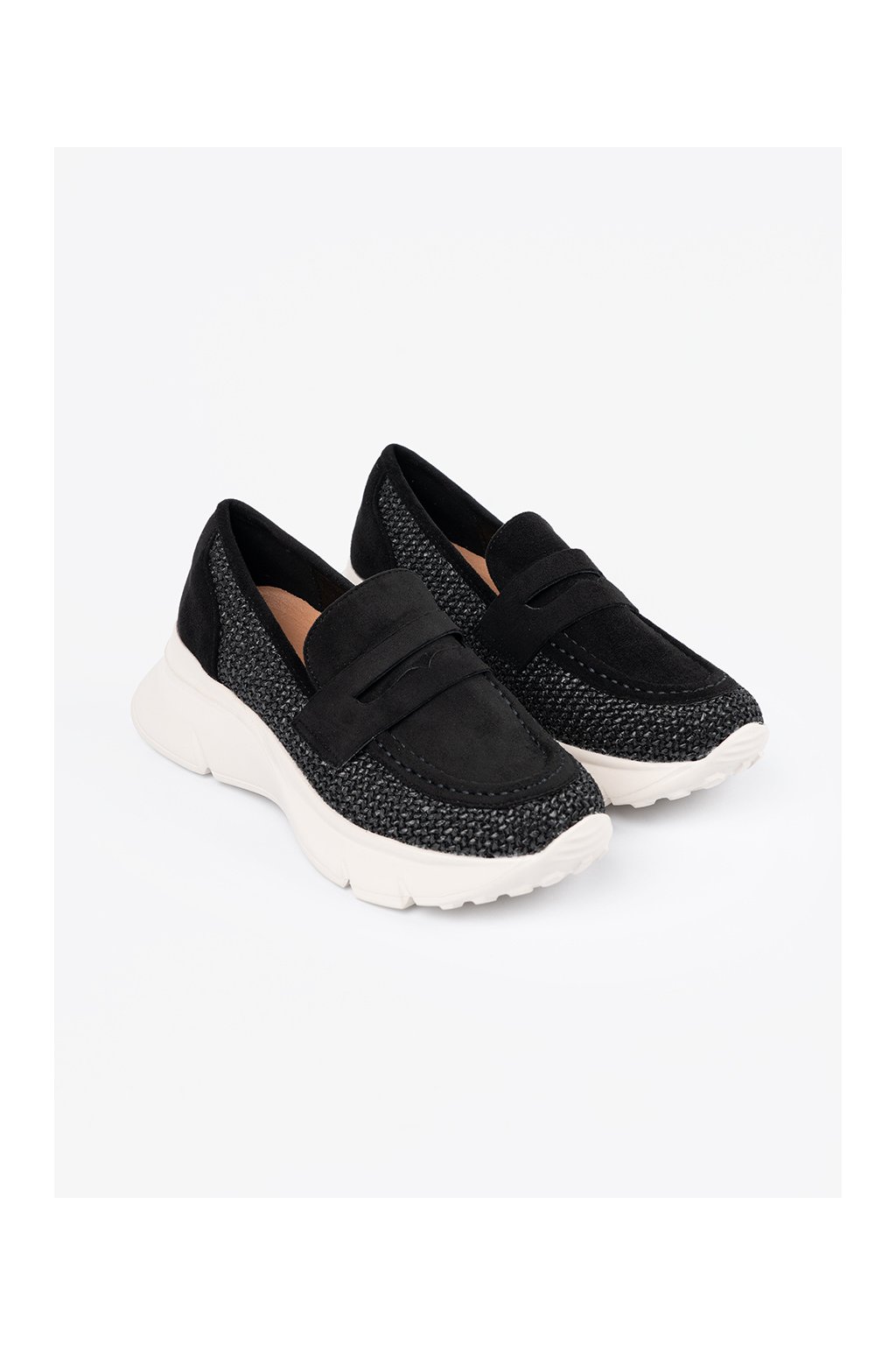 Naše černé polobotky jsou vyrobeny z vysoce kvalitní imitace zamszu a textilu, což jim dodává luxusní vzhled a dlouhou životnost. Platforma z odolného syntetického materiálu zaručuje stabilní chůzi a zároveň opticky prodlouží vaše nohy. Pečlivě zabudovaný zápěstek a plný nosník dodávají botám eleganci a sofistikovanost.
