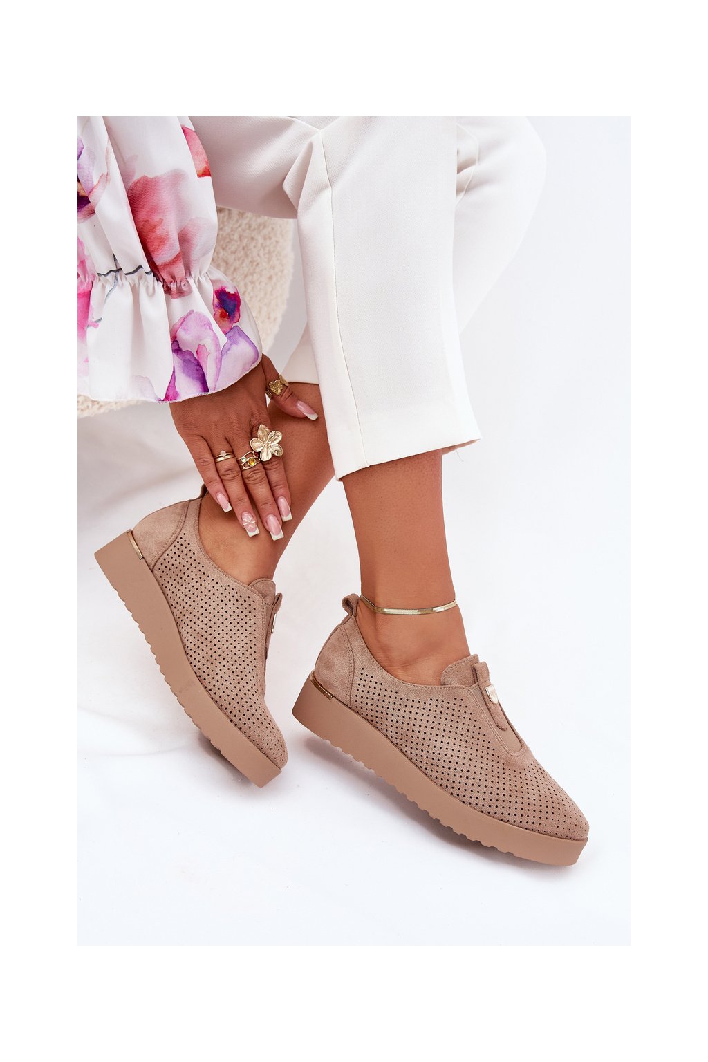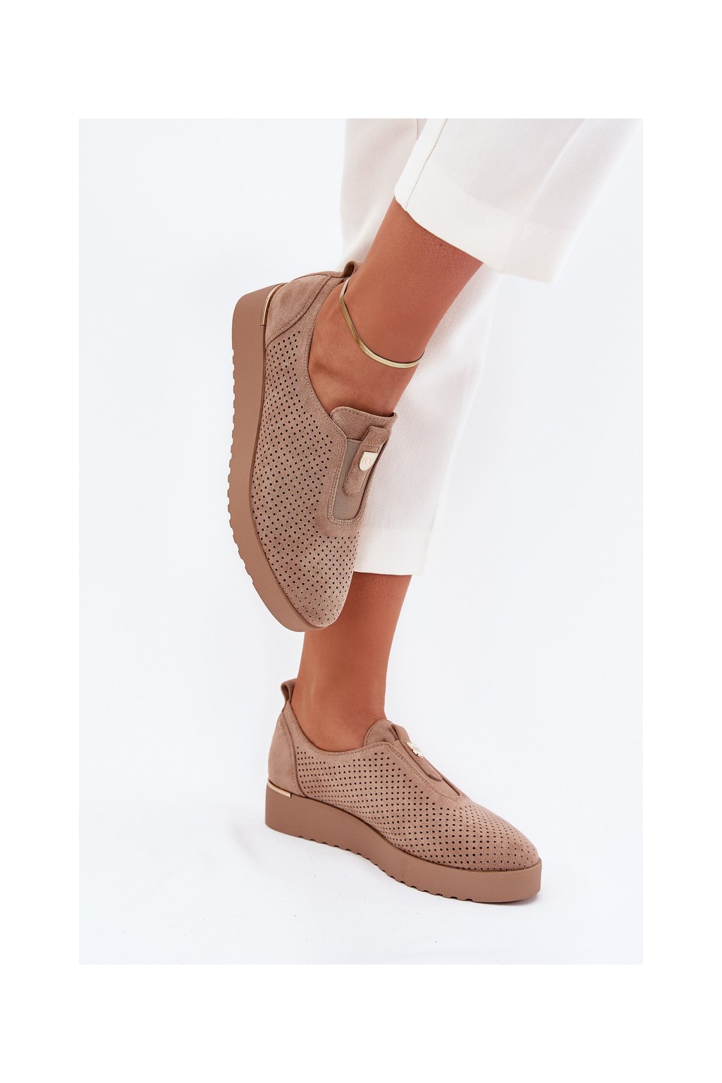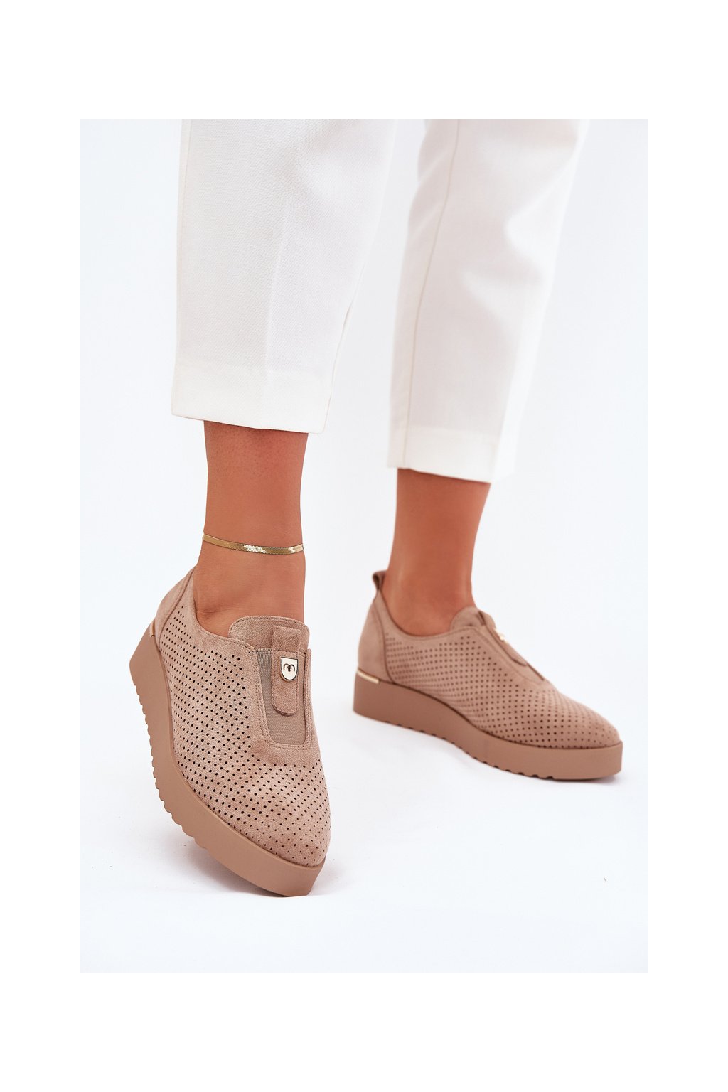 Dámske semišové poltopánky na platforme, tmavohnedé, kód produktu NS389P KHAKI