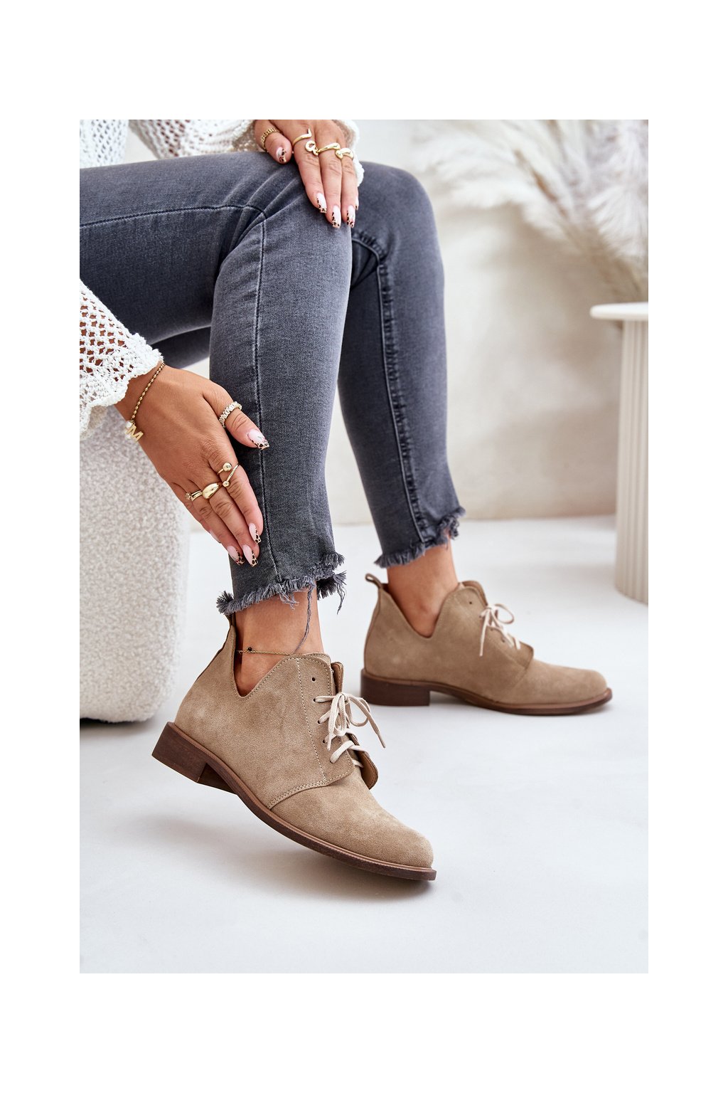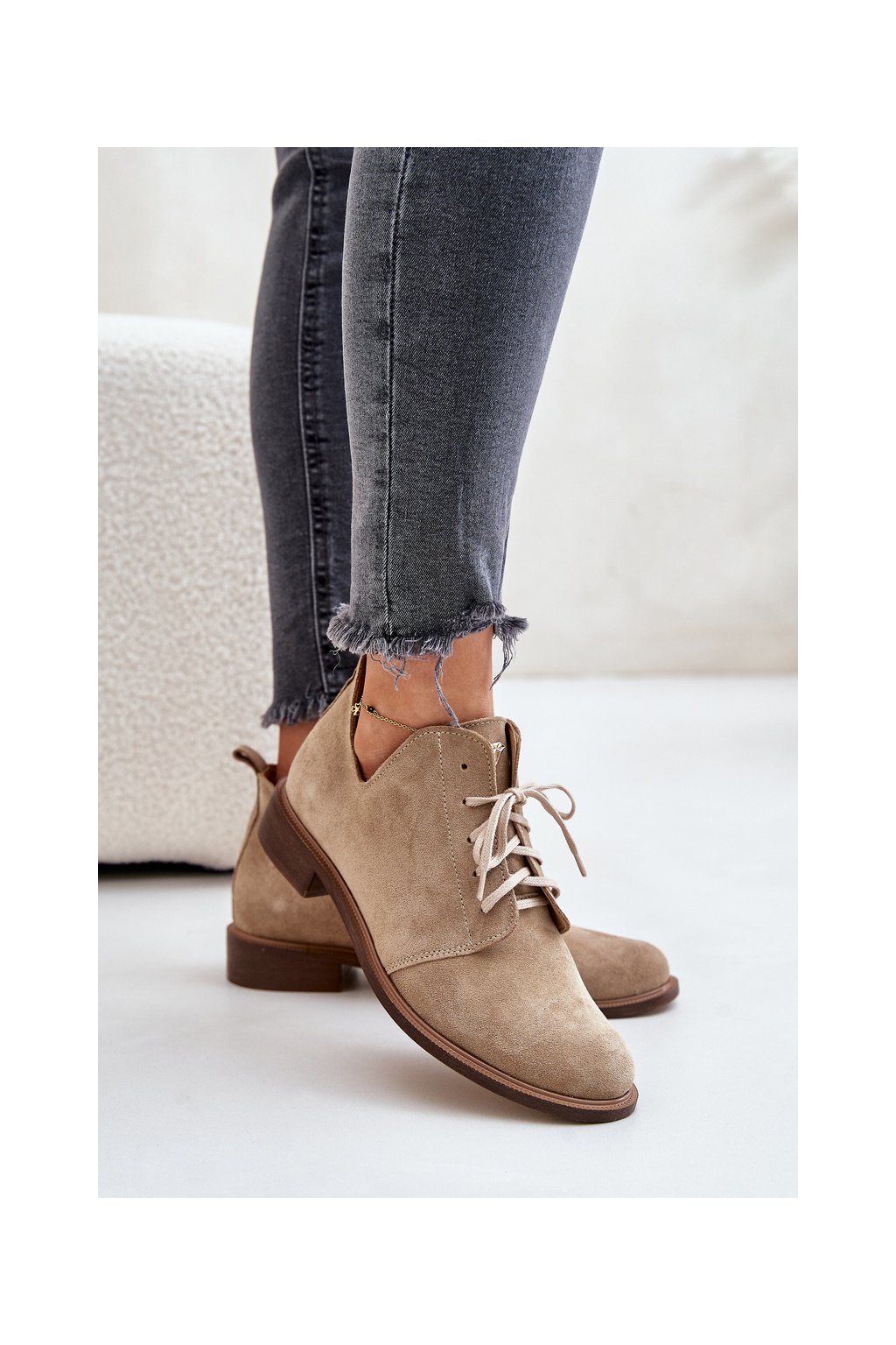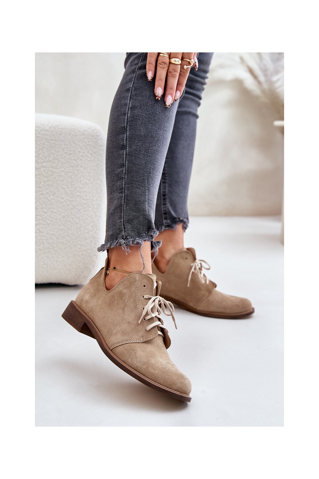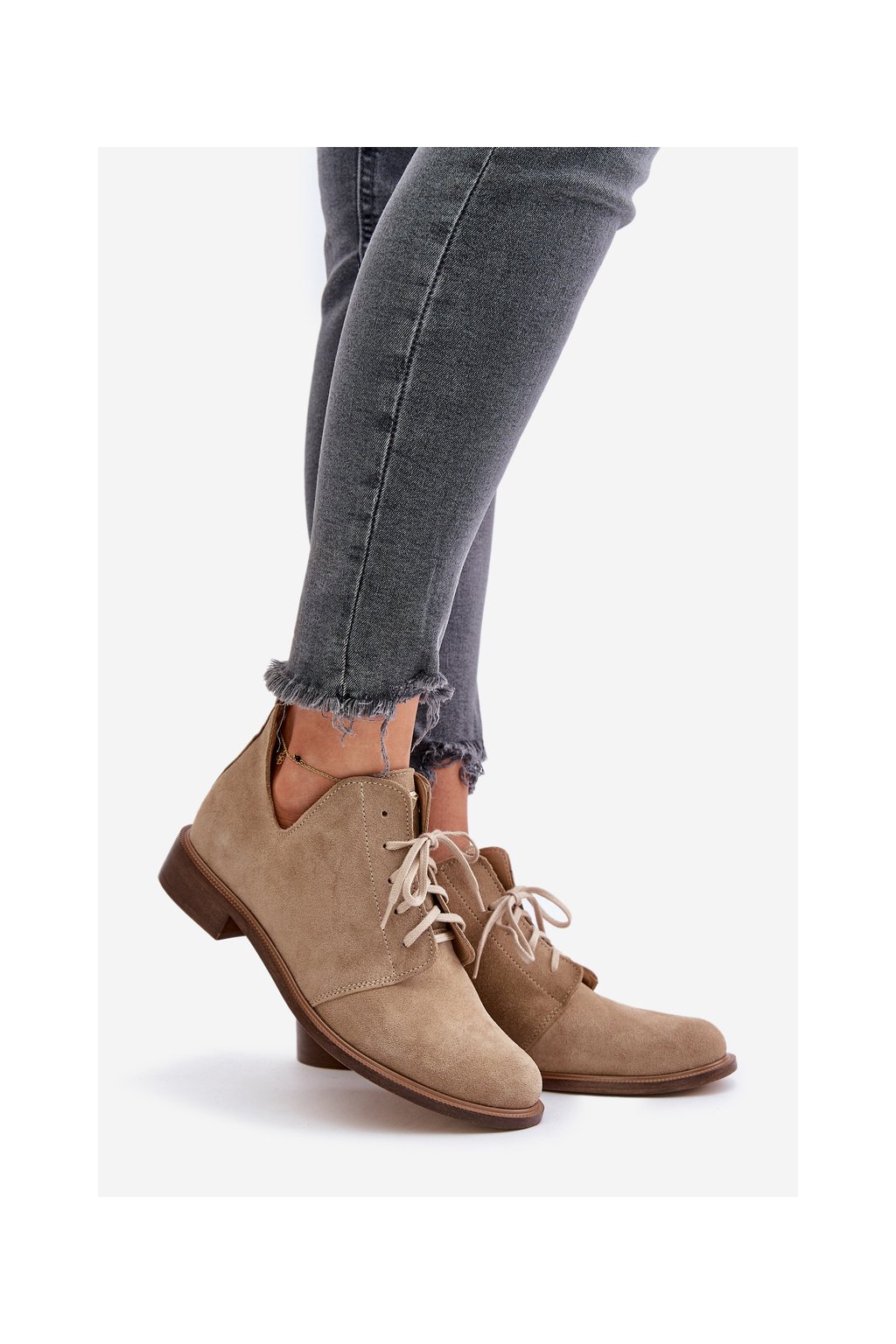 Béžové dámske poltopánky z prírodnej zamszovej kože s rovnou podrážkou, kód produktu 2959/023