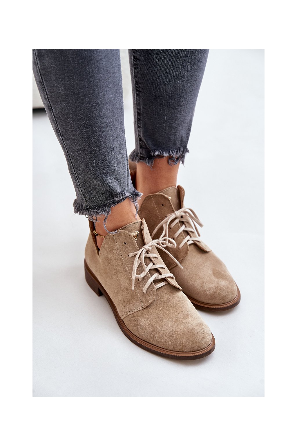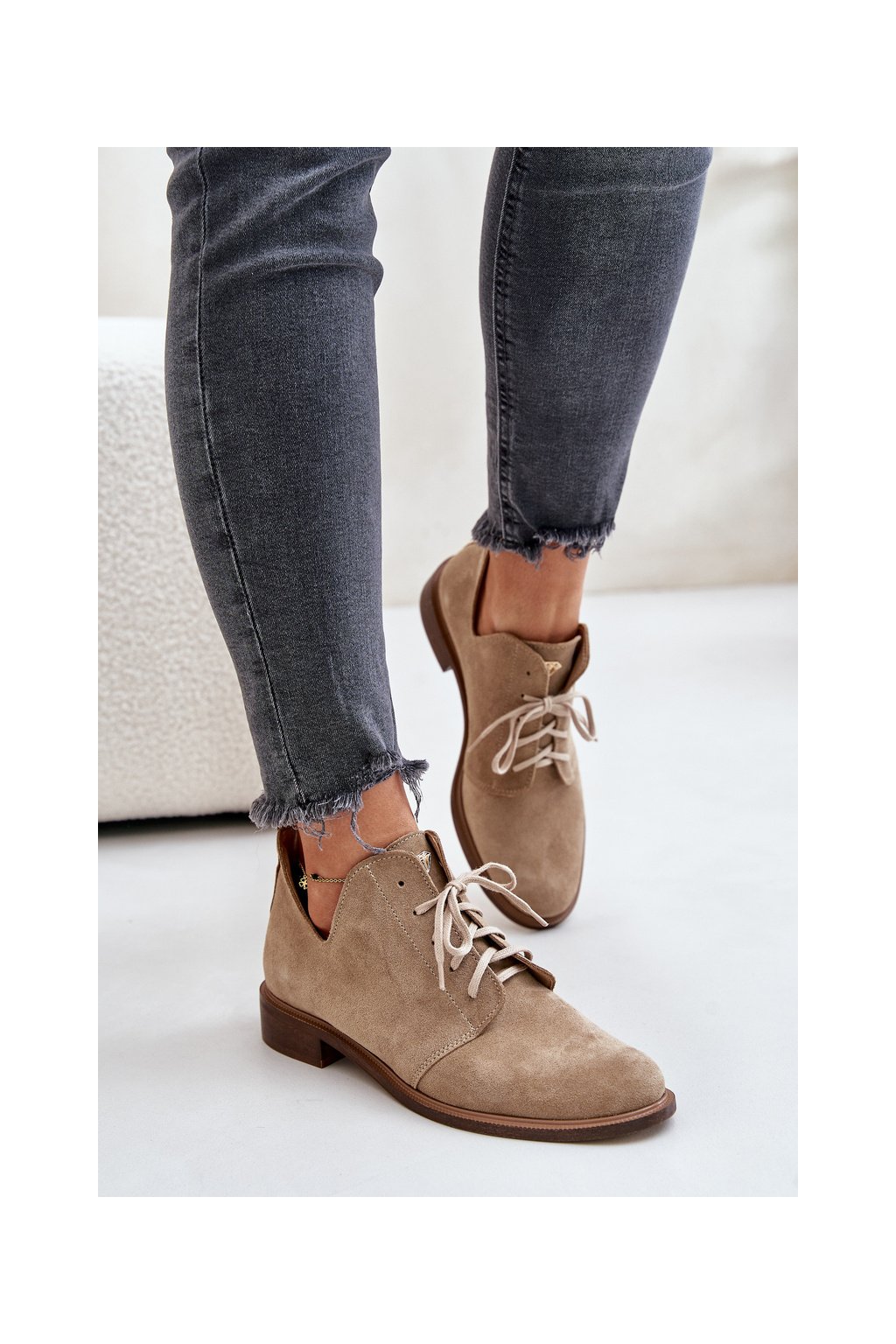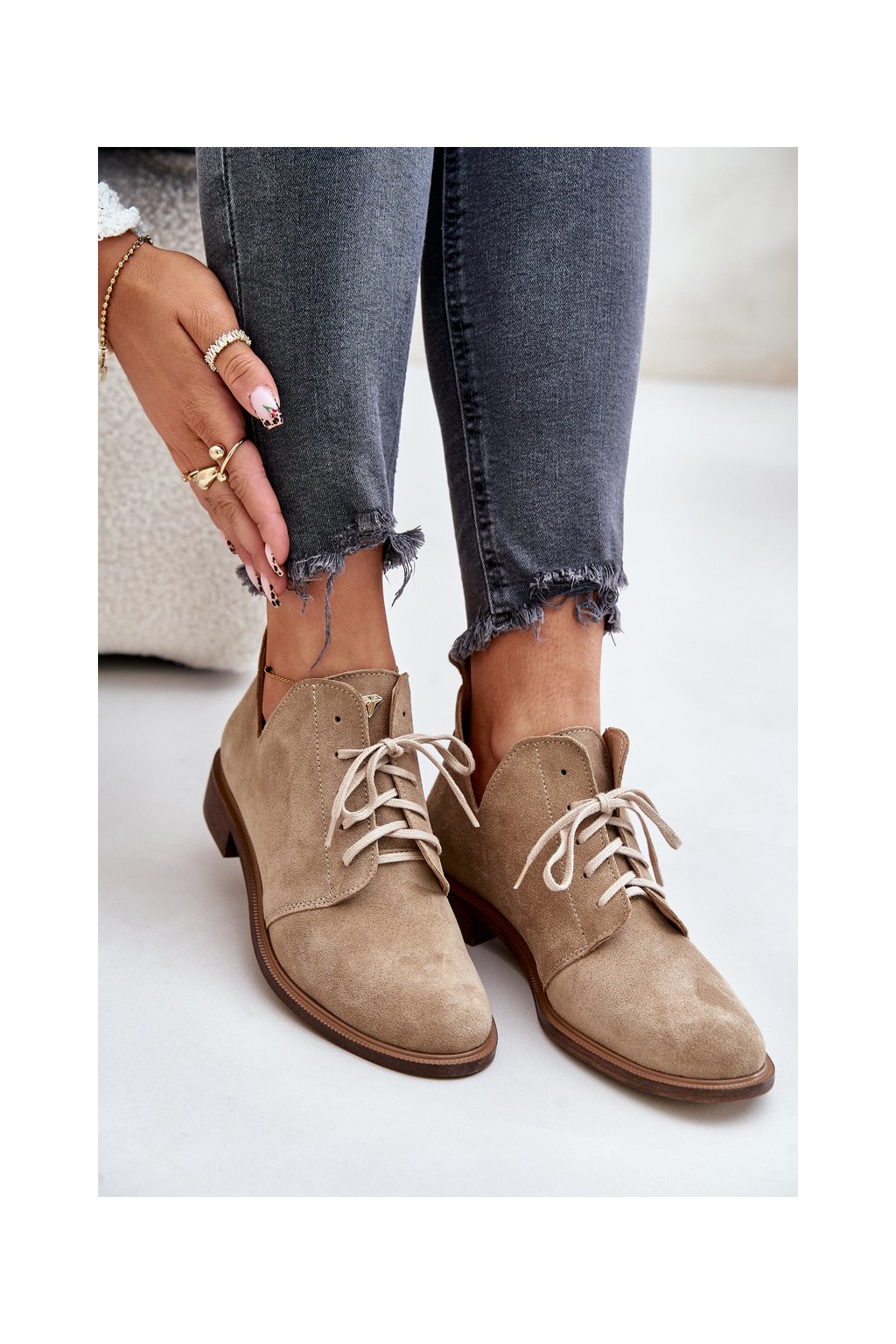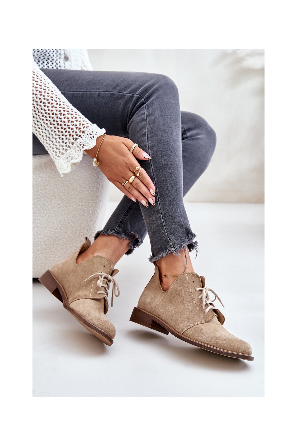 Béžové dámske poltopánky z prírodnej zamszovej kože s rovnou podrážkou, kód produktu 2959/023