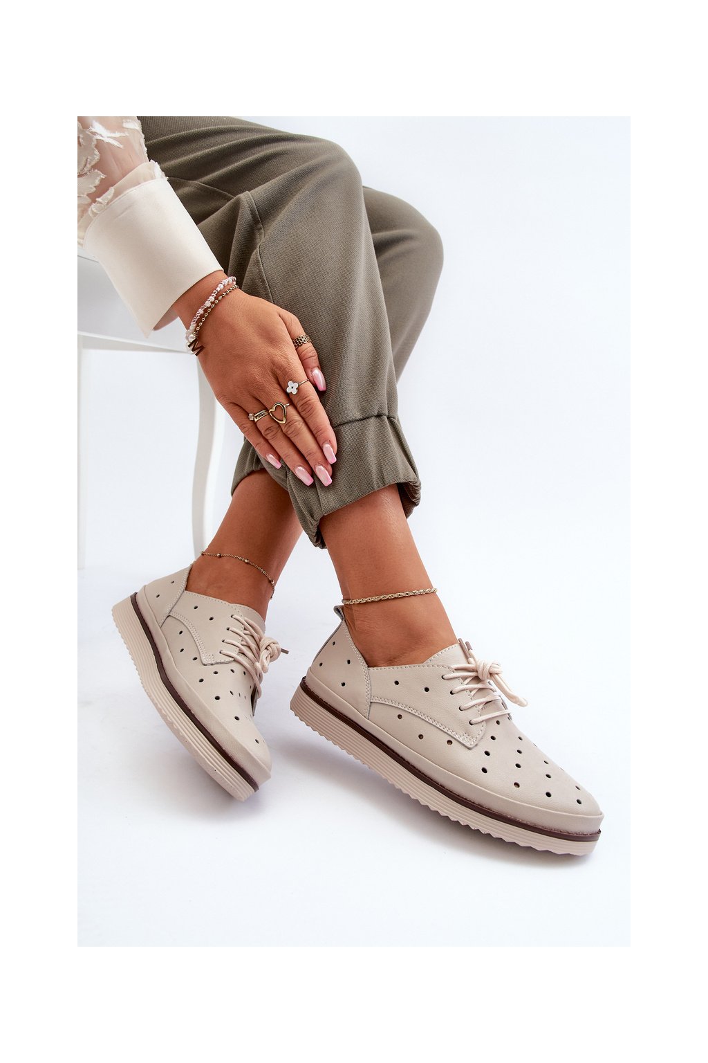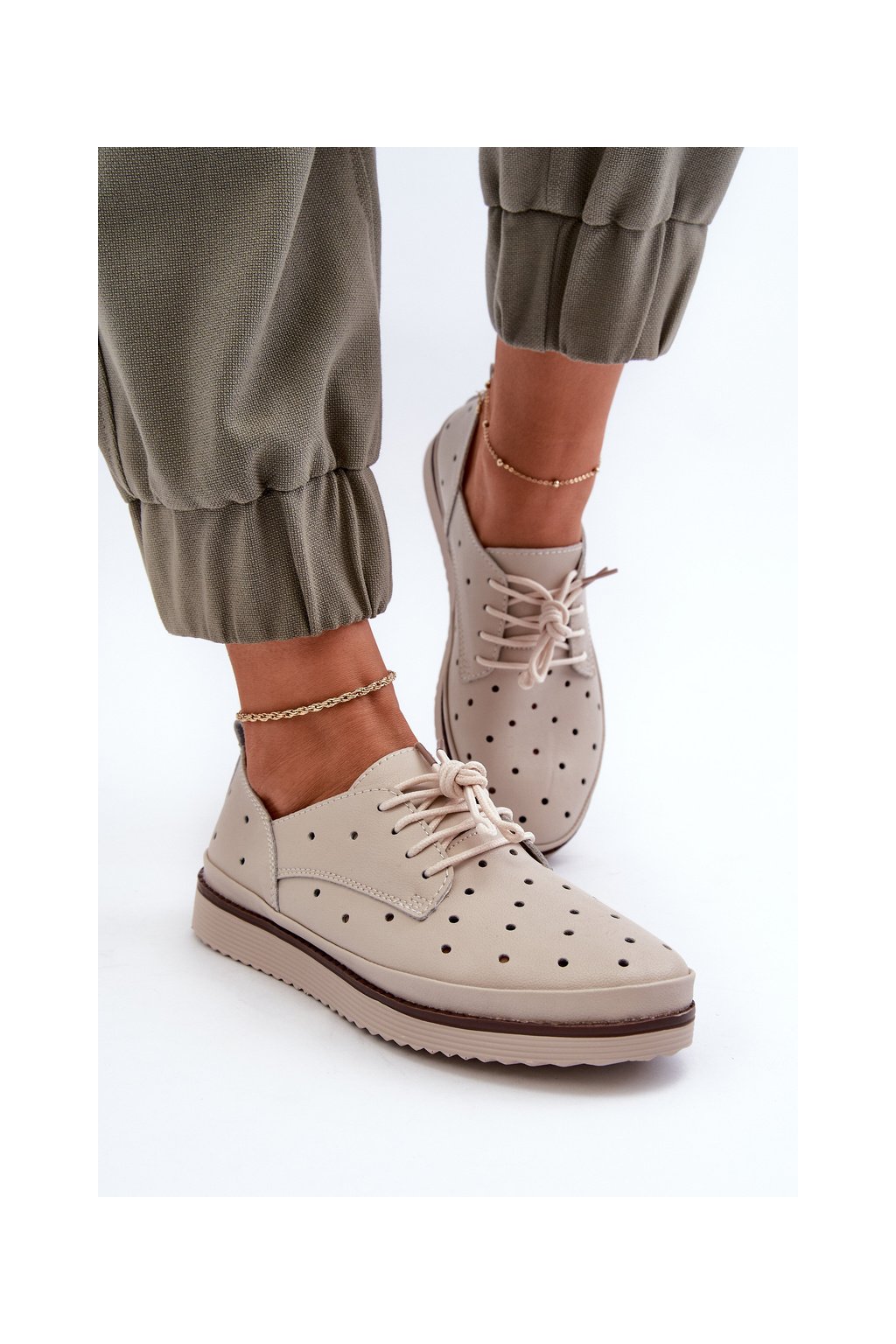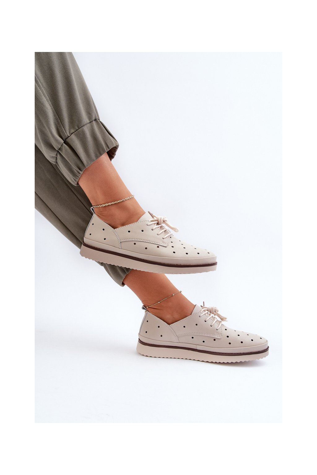 biele Dámske kožené polobotky s.barski lr182 / LR182 BEIGE
