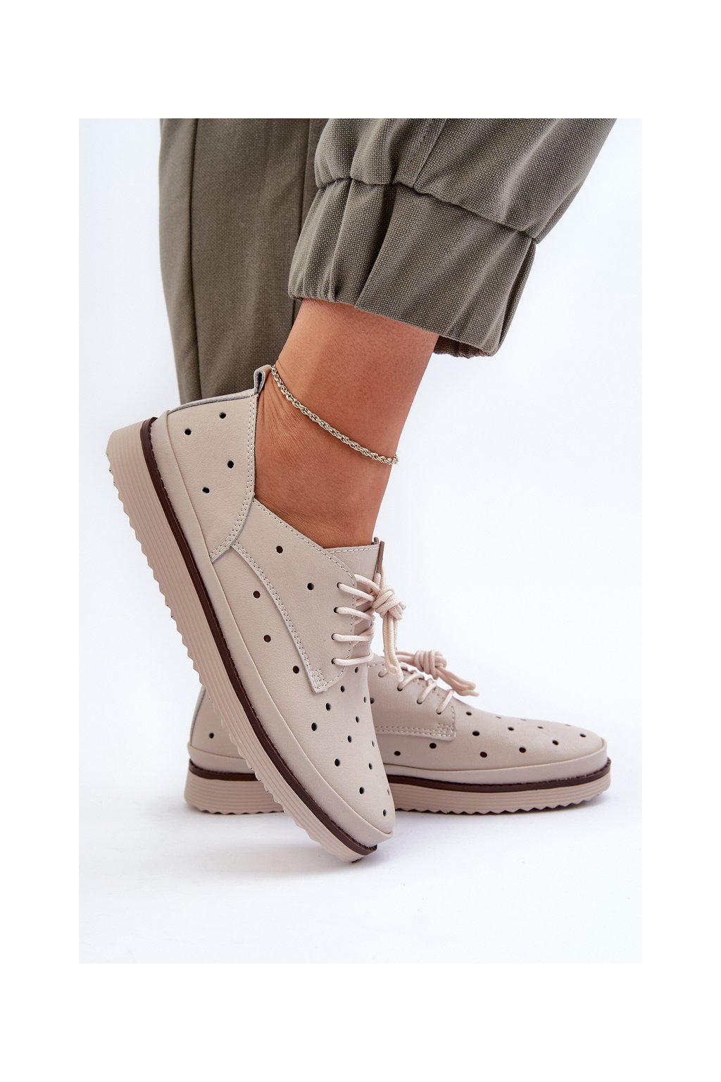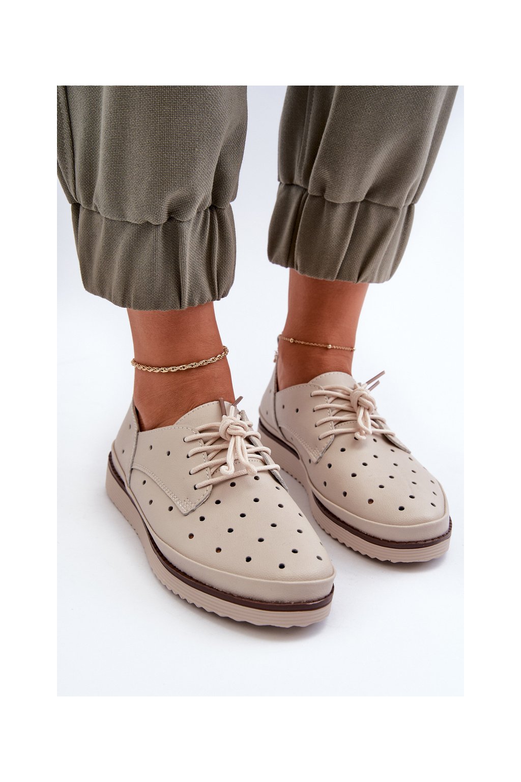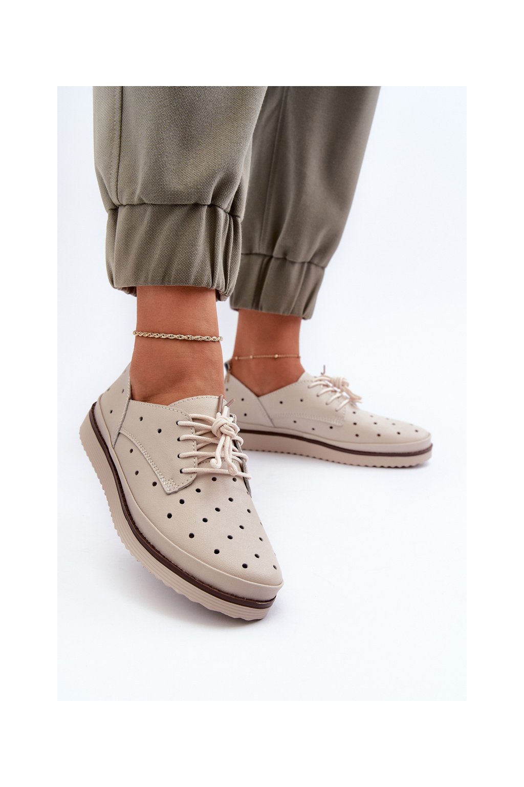 biele Dámske kožené polobotky s.barski lr182 / LR182 BEIGE