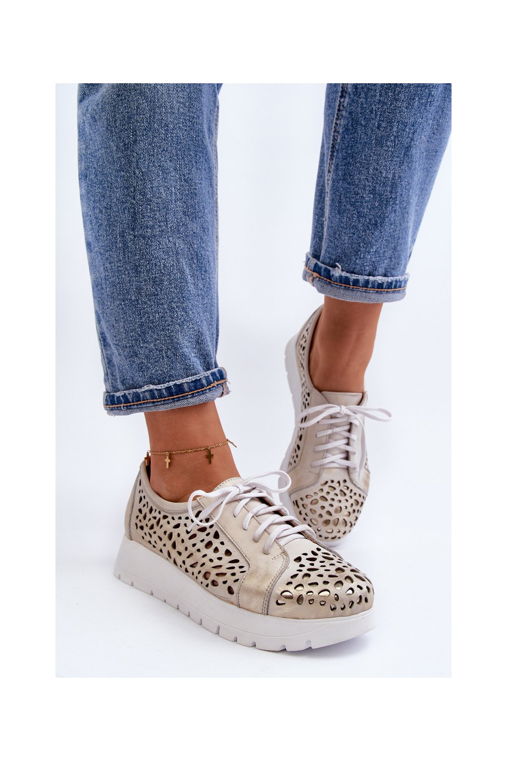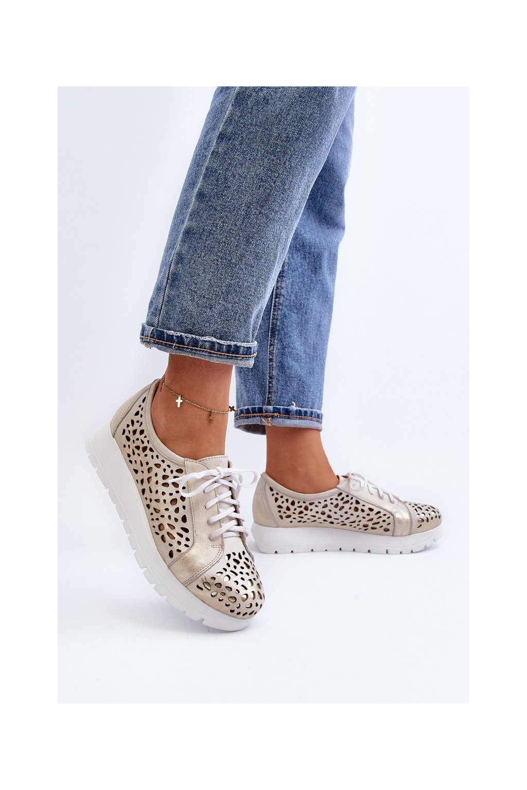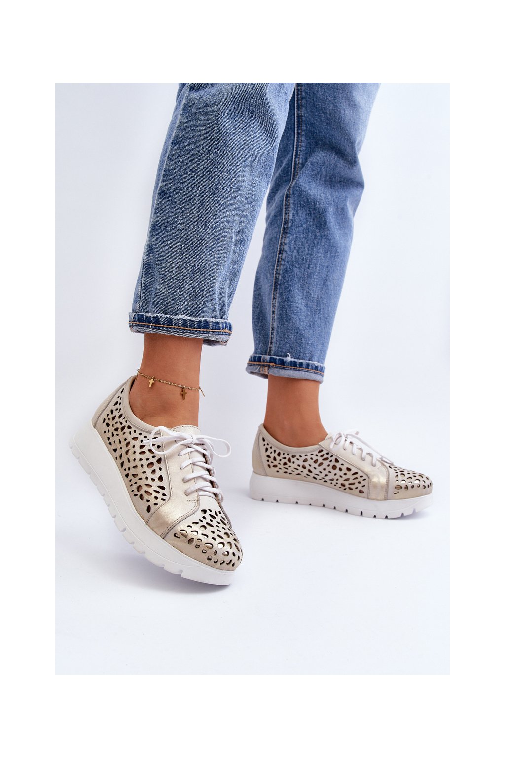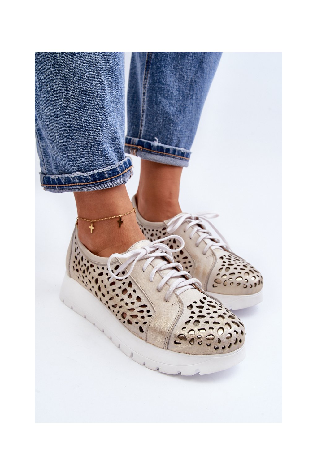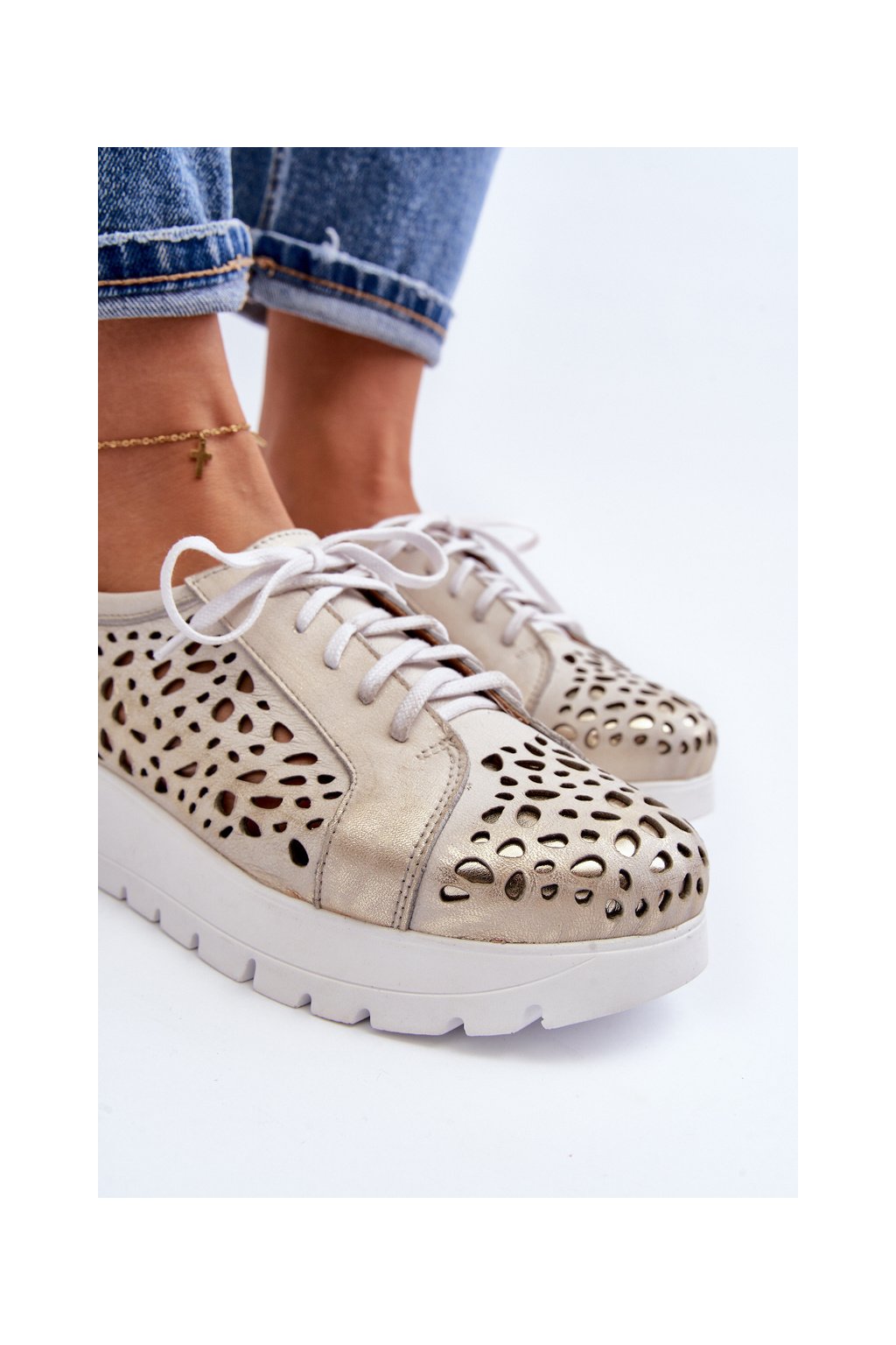 Kožené polobotky na platforme bežové hypnosis / 2821/004